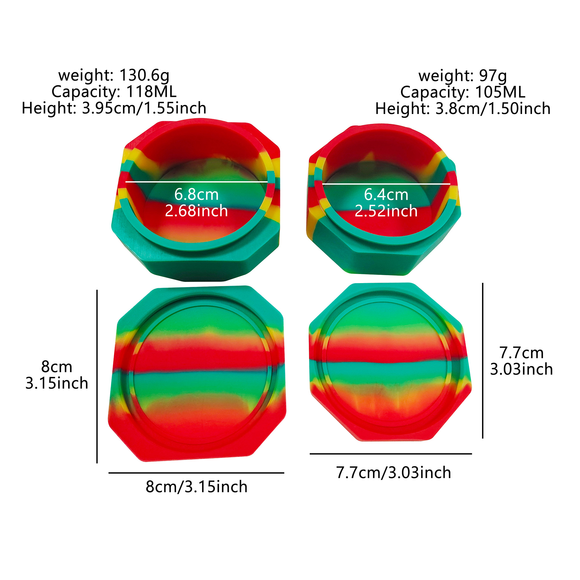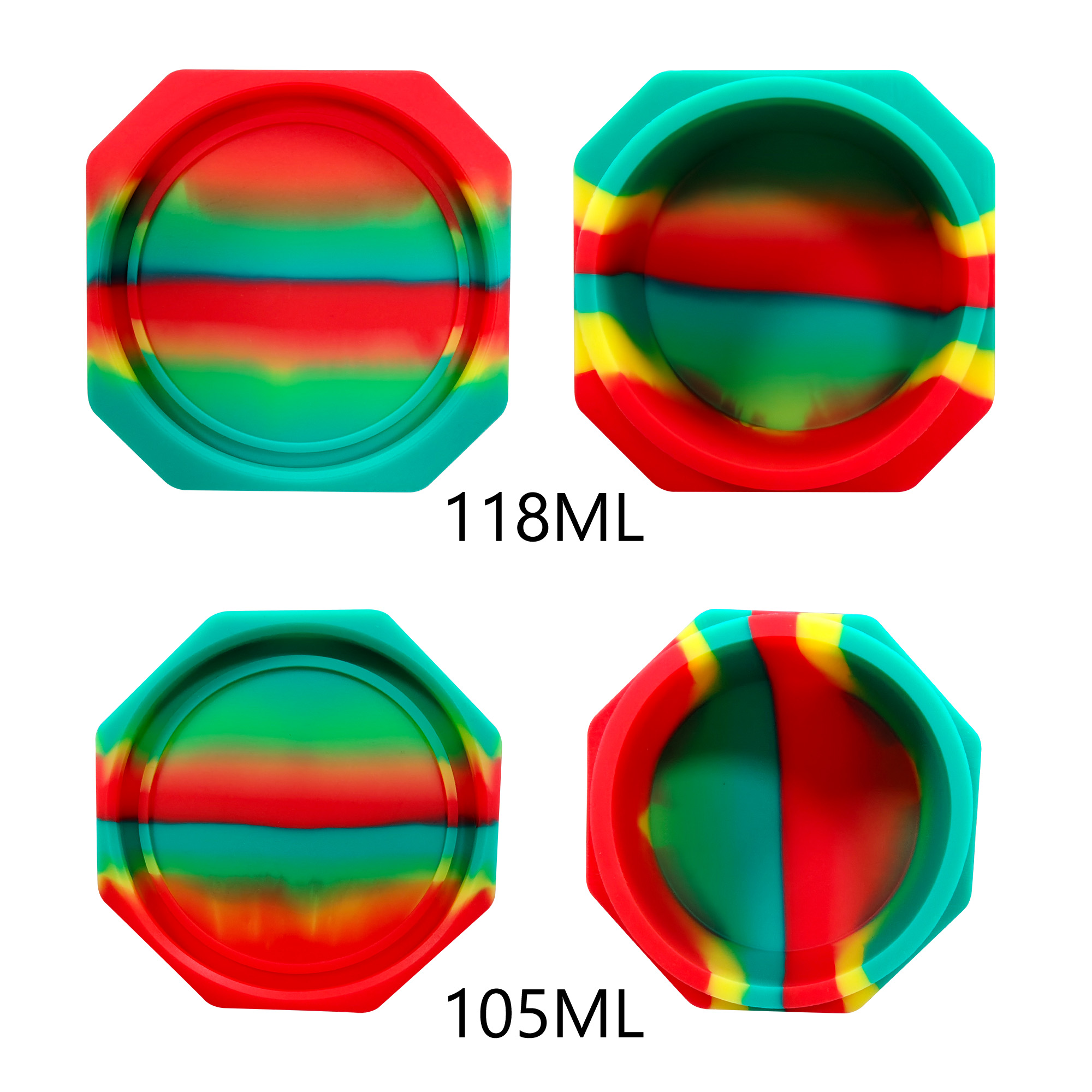 These are two different sizes of large storage containers, available in multiple colors, reusable, durable, flexible, easy-to-clean, and sealed silicone wax containers for storing spices, balms, creams, etc. They make great gifts and handy household tools.