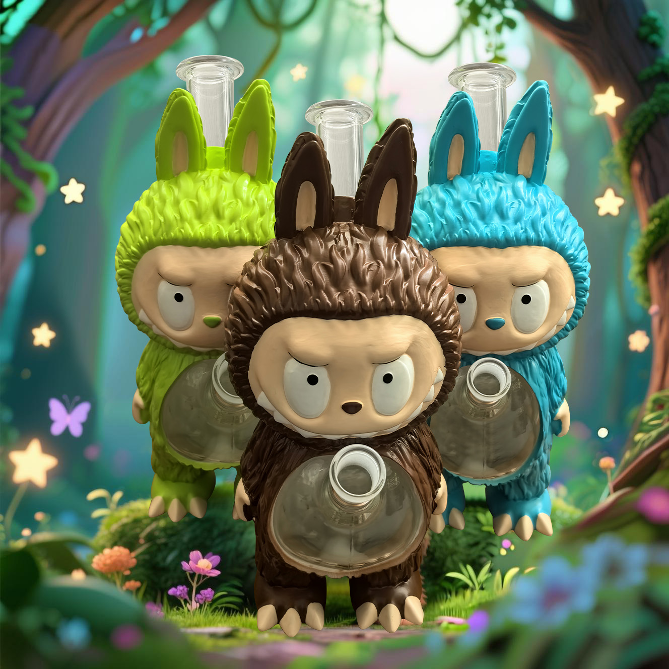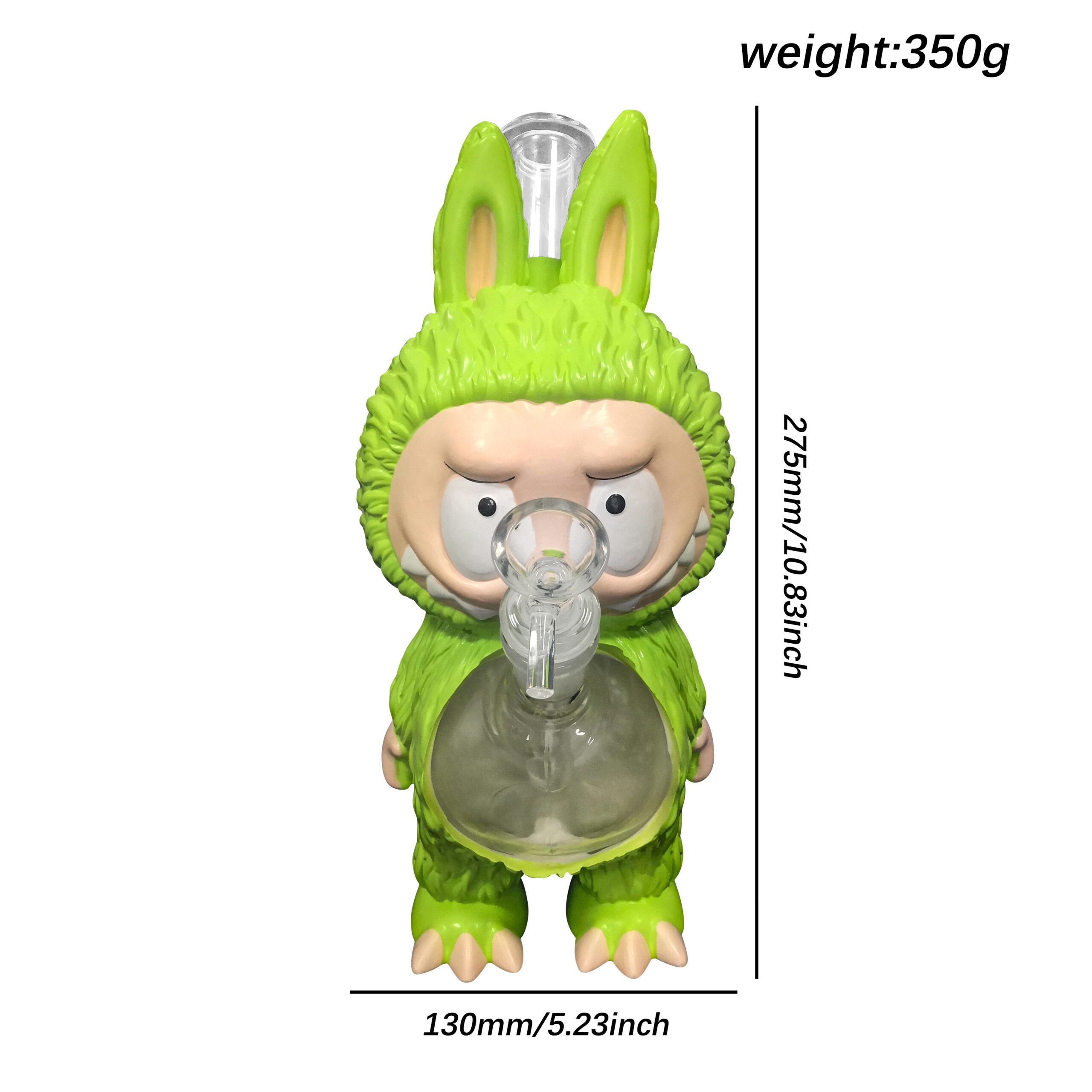 Cartoon-style fun and whimsical hookah pipe. With trendy collectible figure texture, vibrant colors, and plush surface texture; constructed from high-quality PVC and glass materials. Perfect for collectors and enthusiasts.