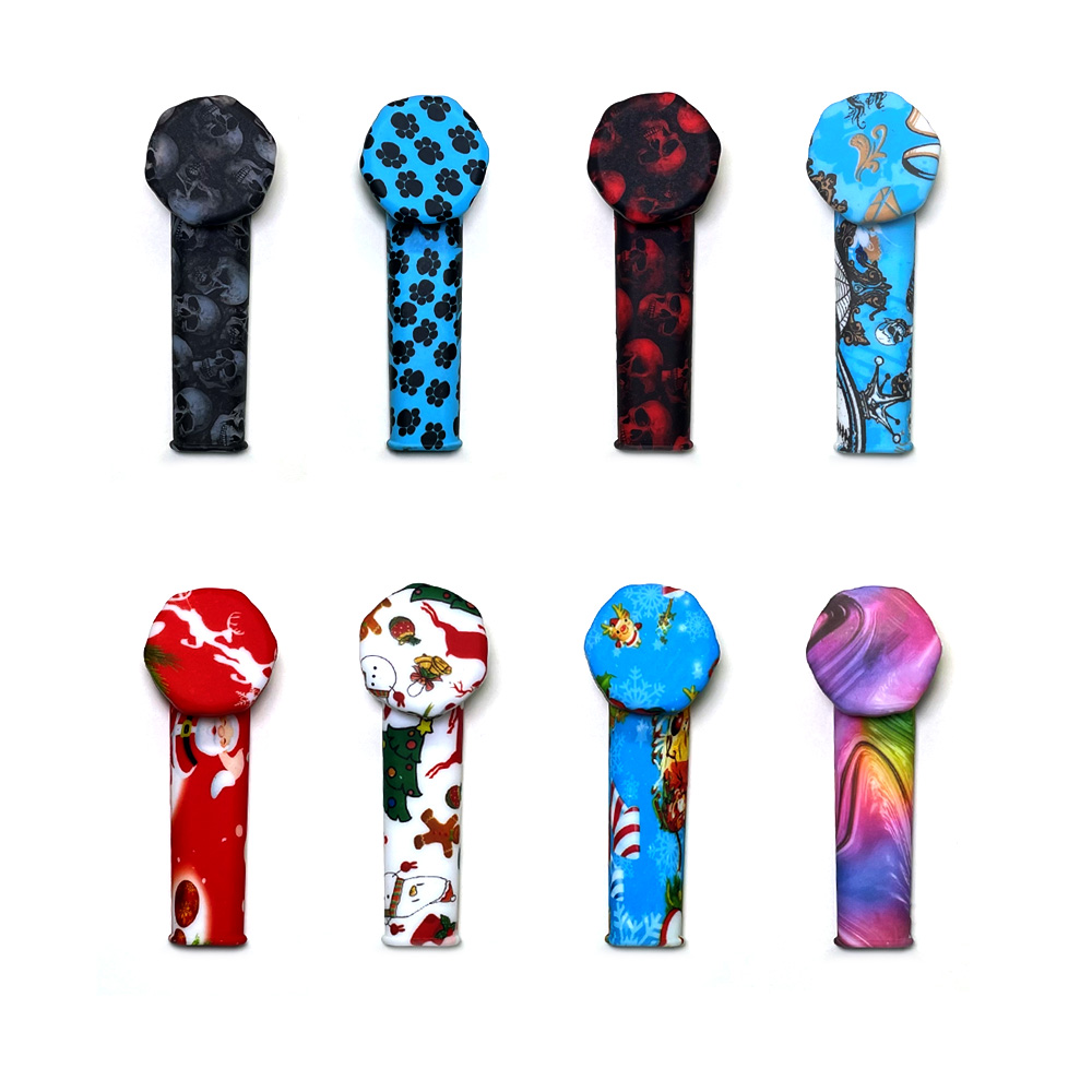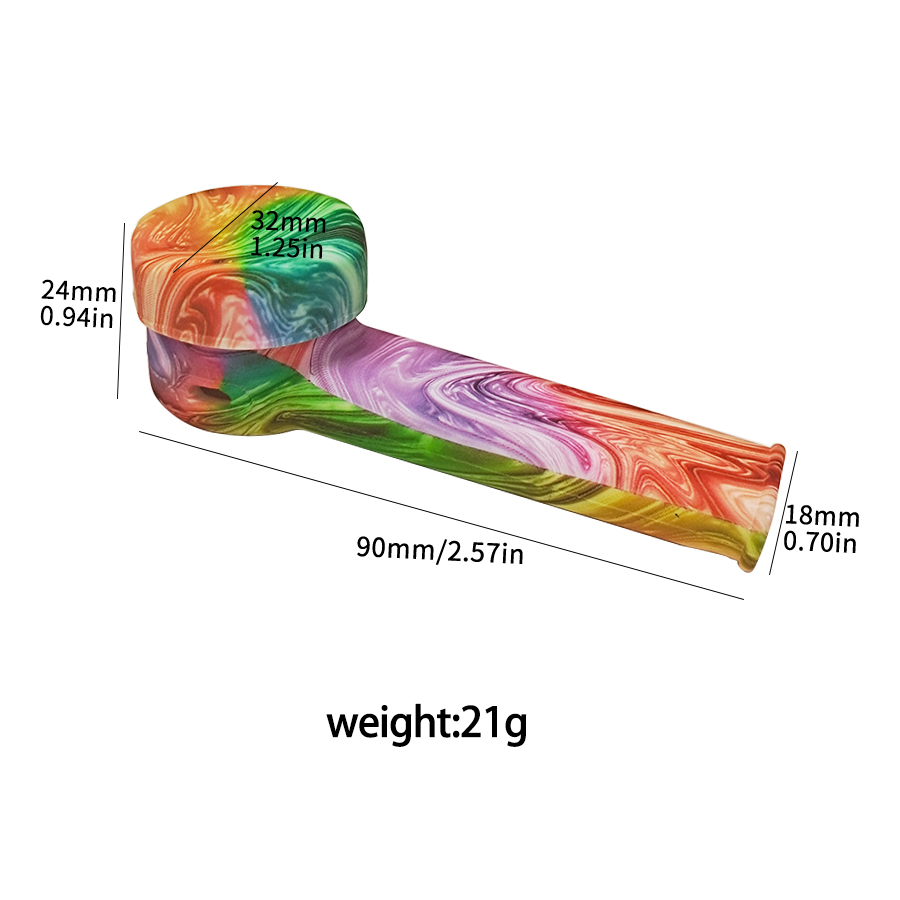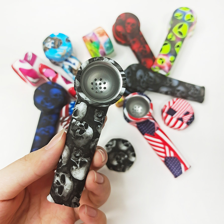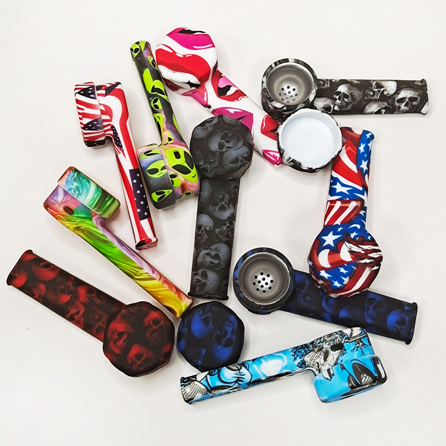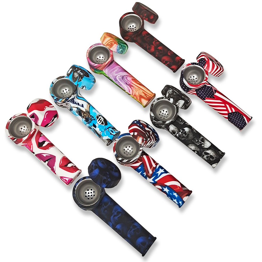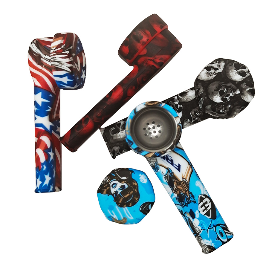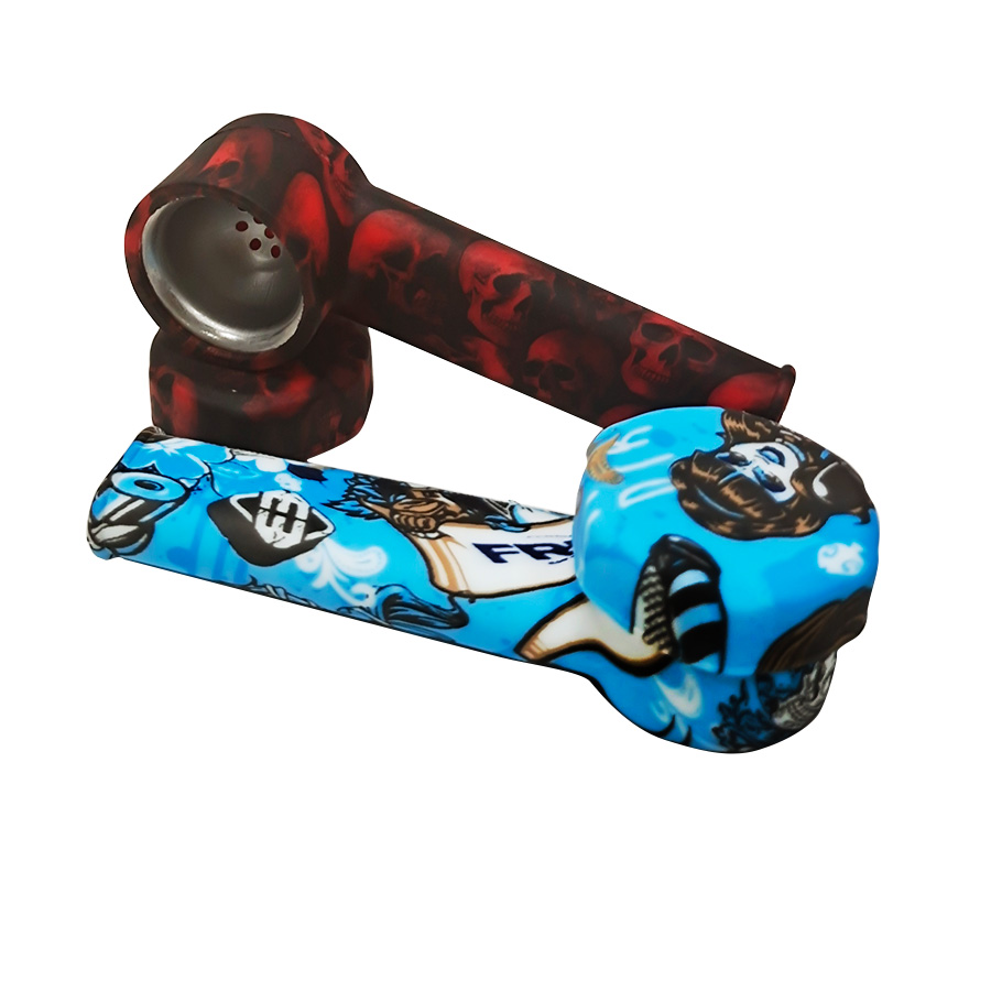 This silicone pipe features an L-shaped curved tube design, a round bowl top, a slender mouthpiece, and comes with various patterns. The smooth and glossy silicone material makes it detachable, lightweight, durable, and super easy to clean.