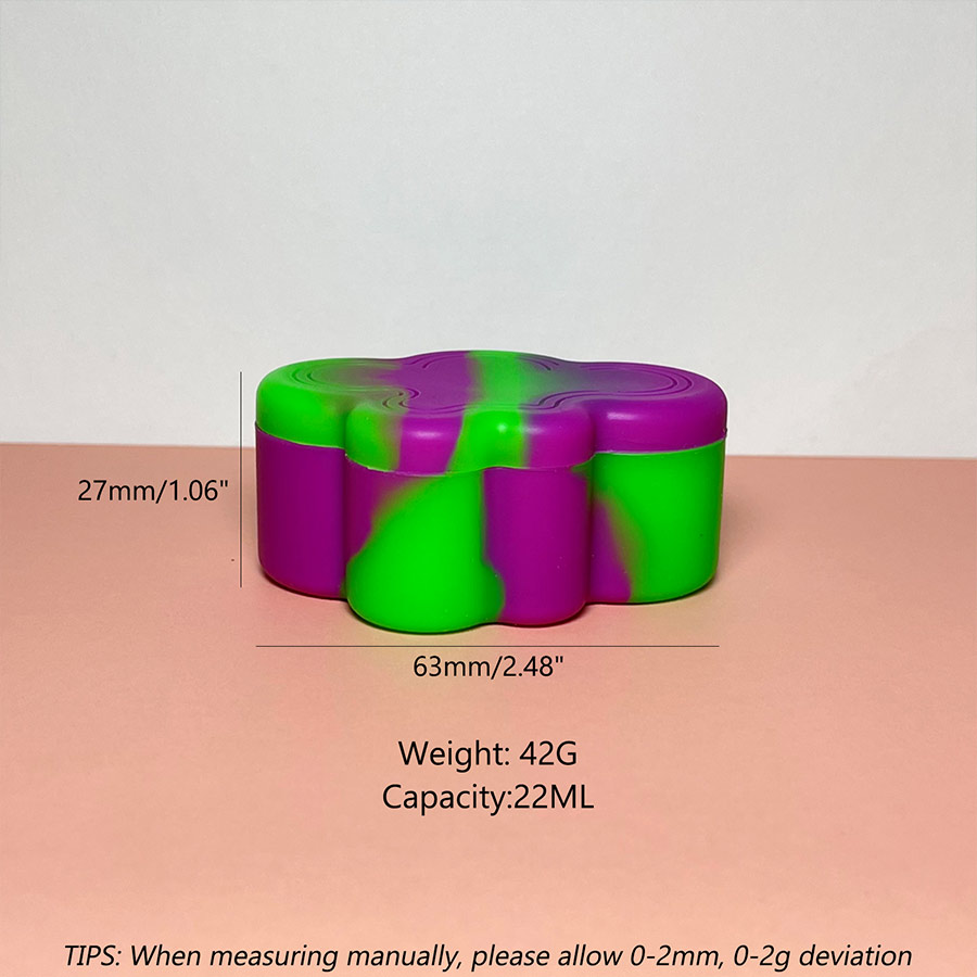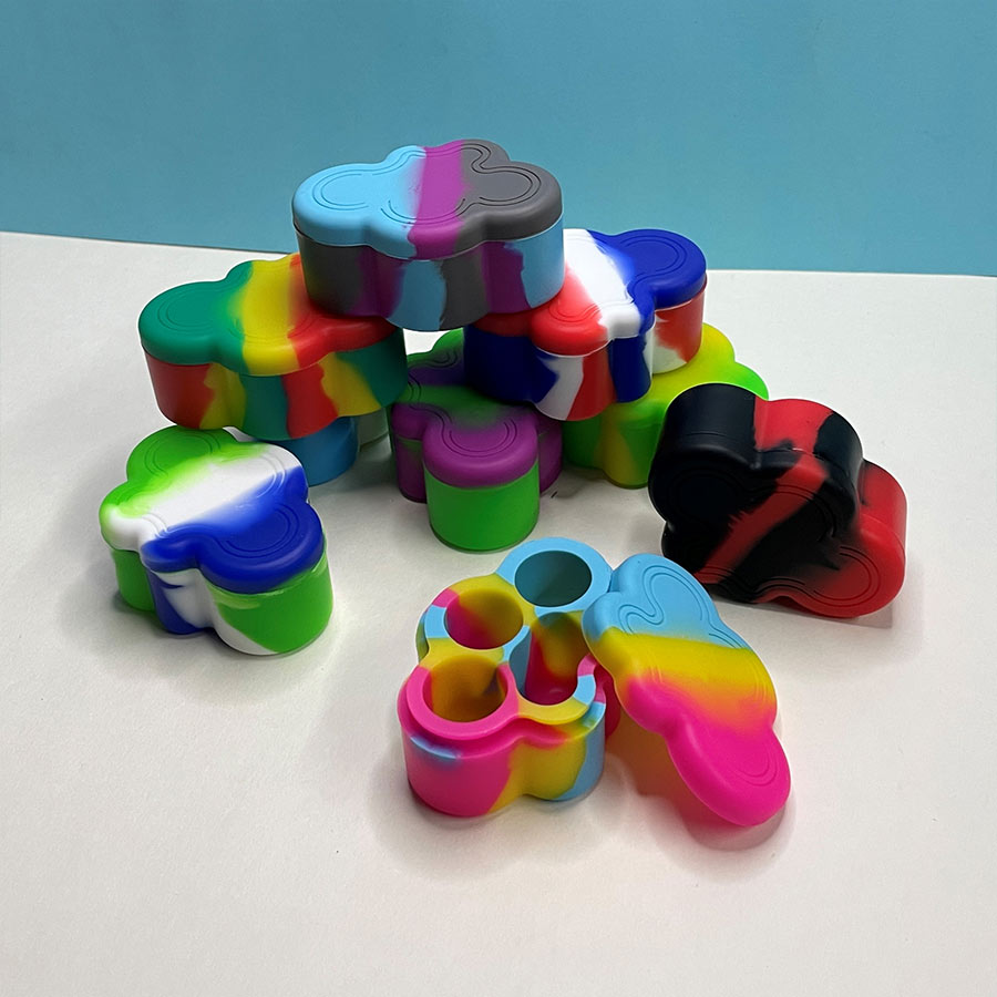 This is an irregular cloud-shaped design with multiple internal compartments, made of heat-resistant food-grade silicone that is odor-free. The sealed small silicone container can meet all your needs for concentrates. These versatile containers are an ideal storage solution for various products, including but not limited to essential oils, lotions, creams, clay masks, eye creams, lip balms, painting supplies, and even spices.