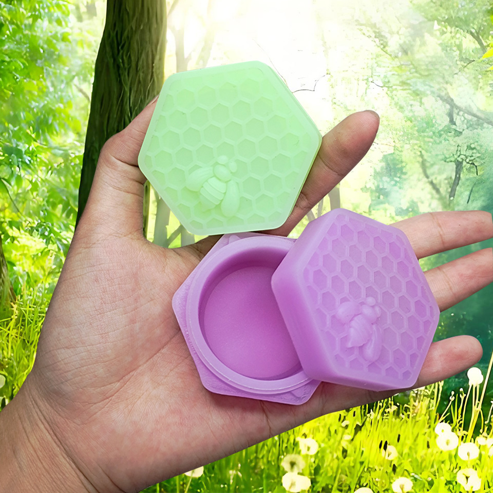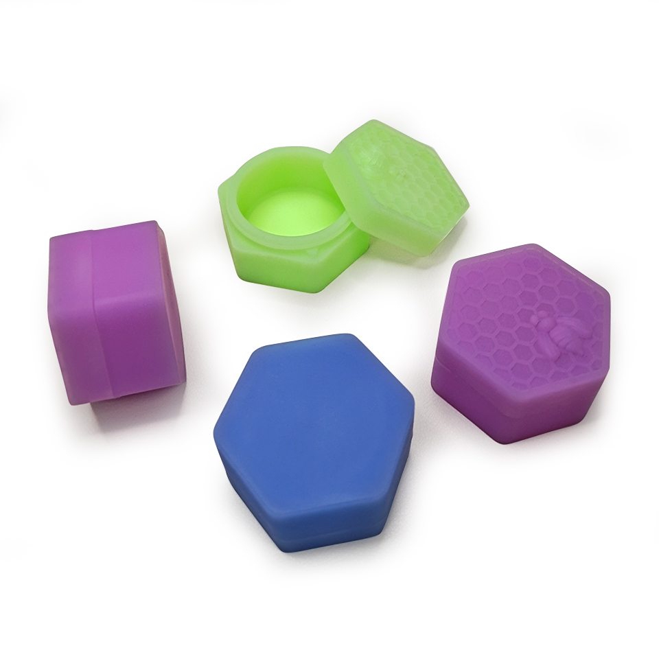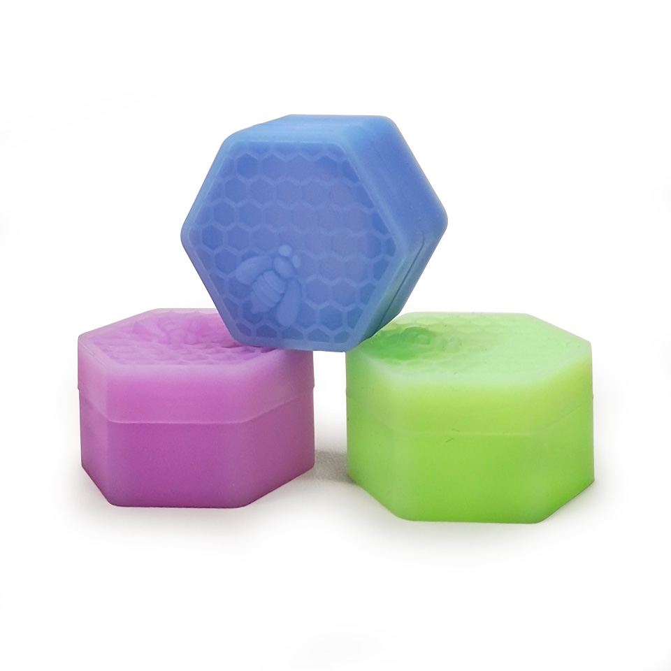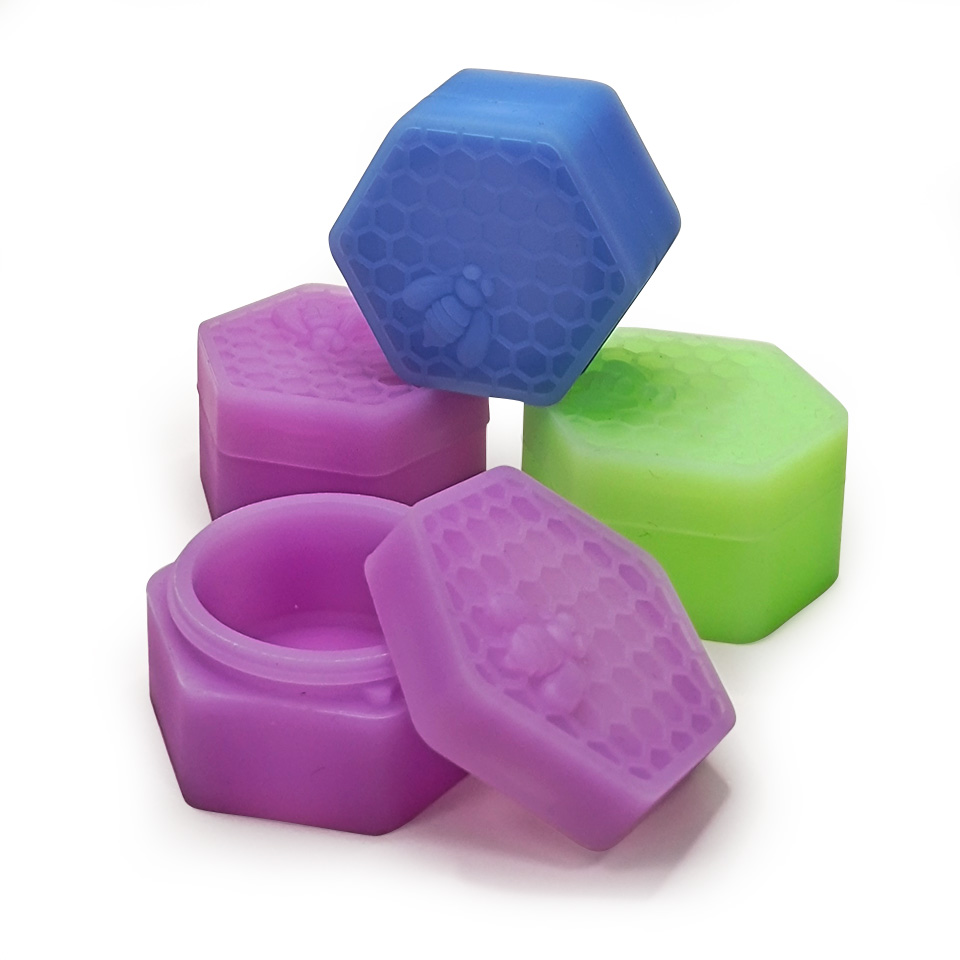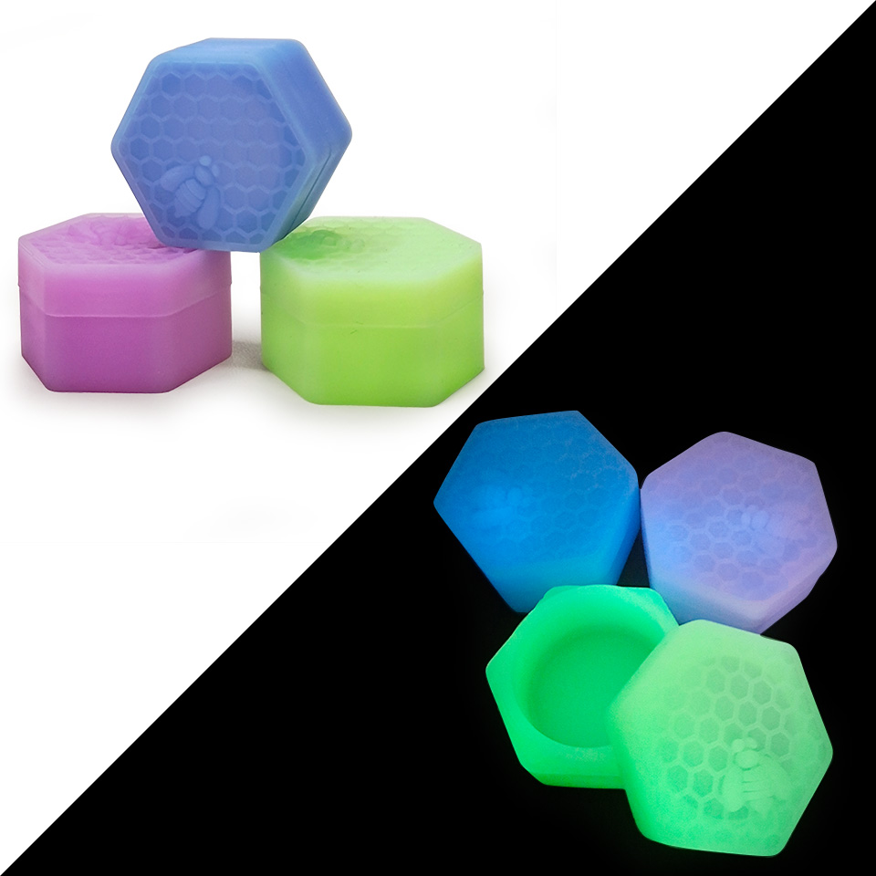 Bee silicone container is a portable storage container featuring a honeycomb element design. Made of durable, non-stick silicone that glows in the dark, it is perfect for safely storing concentrates. Ideal for securely keeping your essentials.