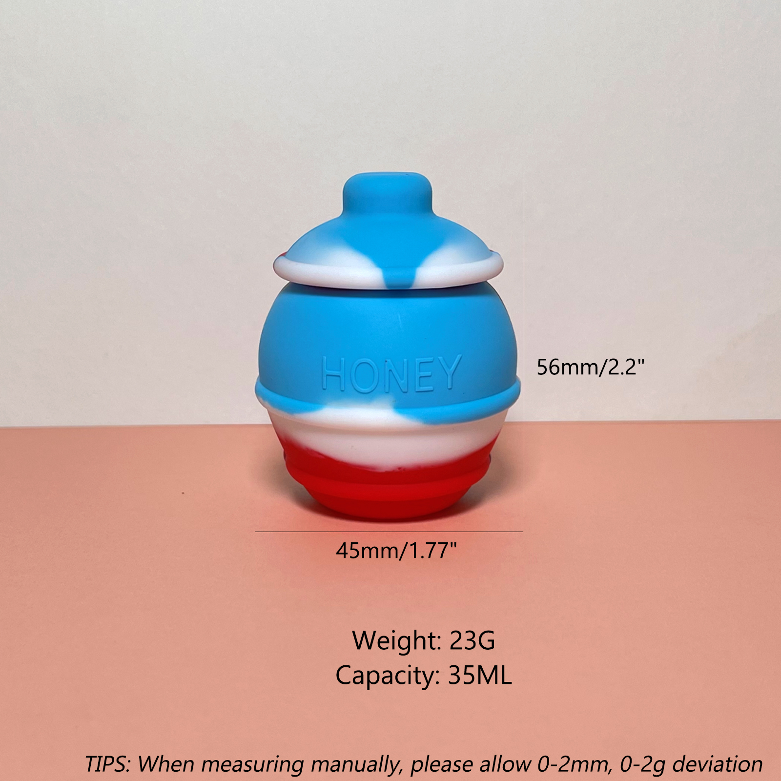 This 35ml 100% silicone container is freezer-safe, heat-resistant, shatterproof, and withstands temperatures up to 450°F.