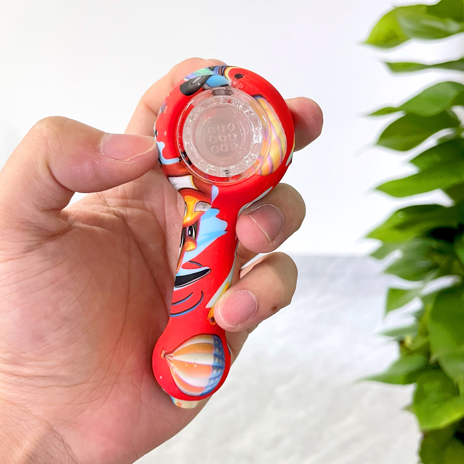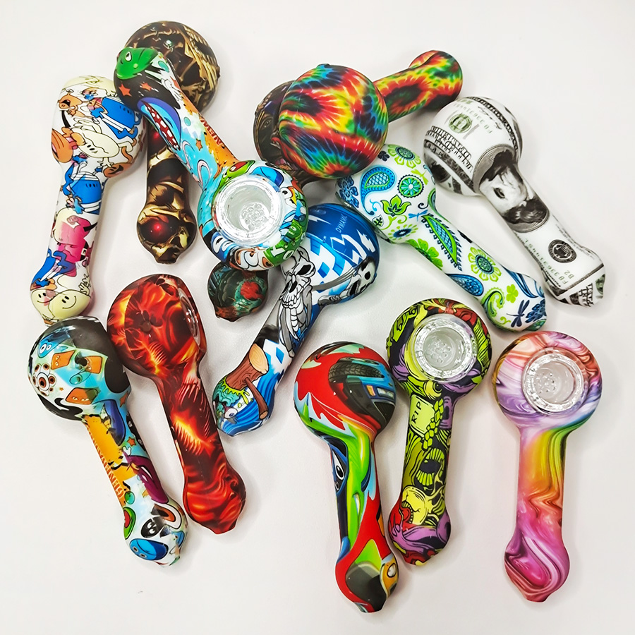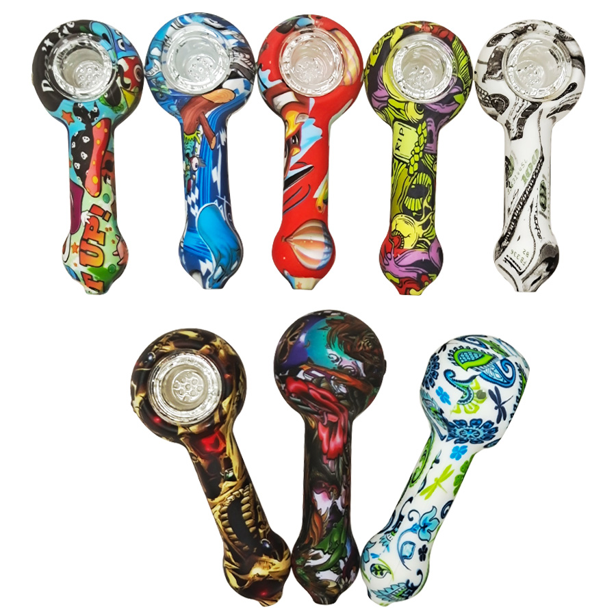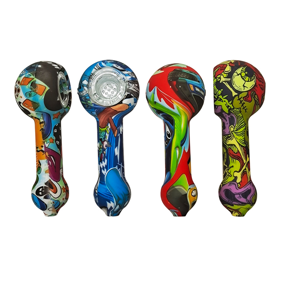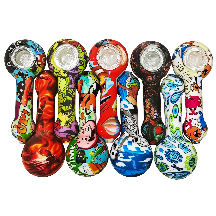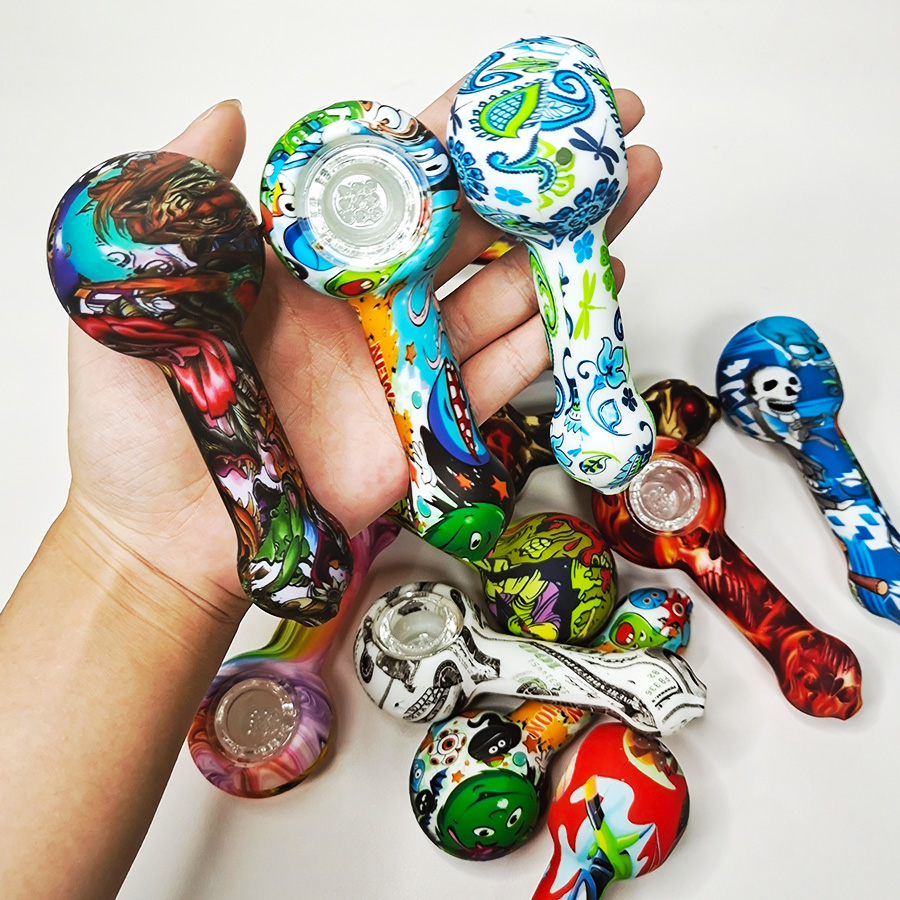 This is a patterned portable smoking device, detachable for easy cleaning, with flexible silicone material ensuring travel durability, while the glass bowl provides a smooth and pure smoking experience.