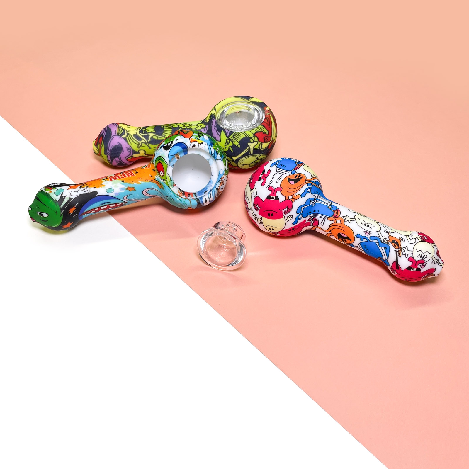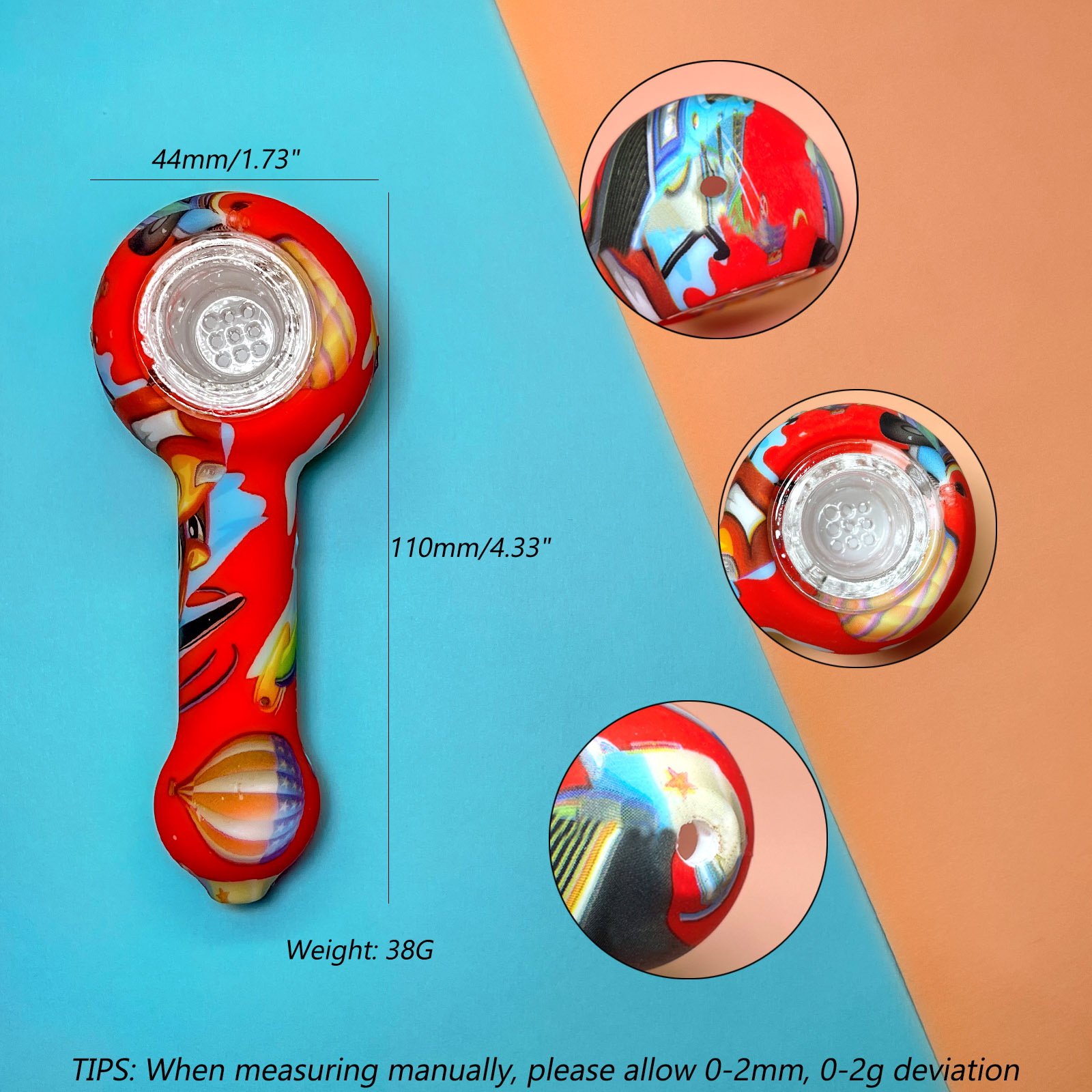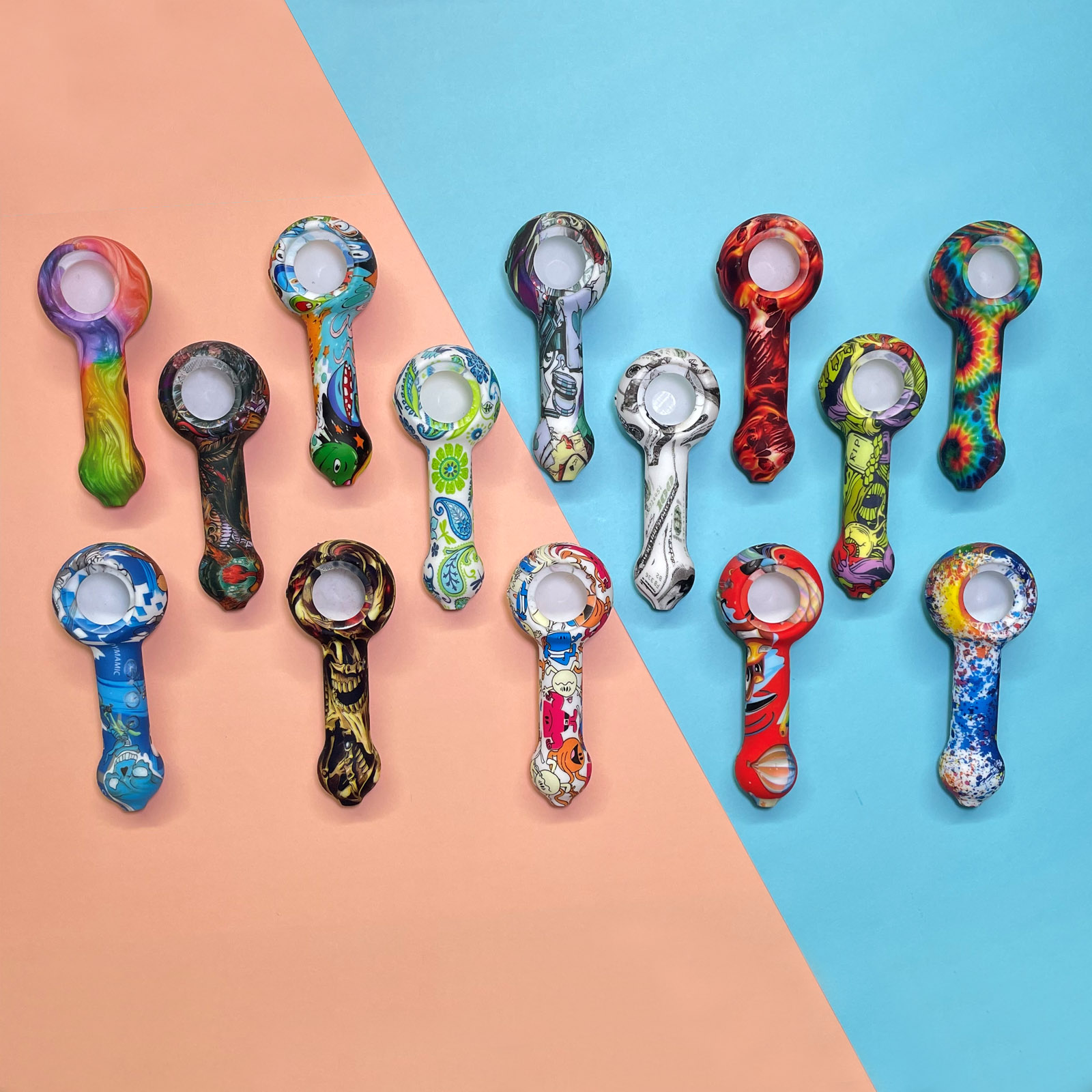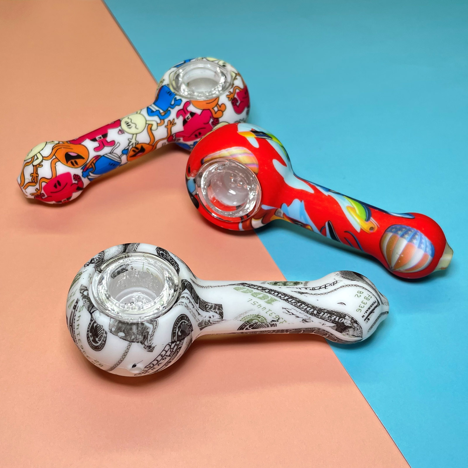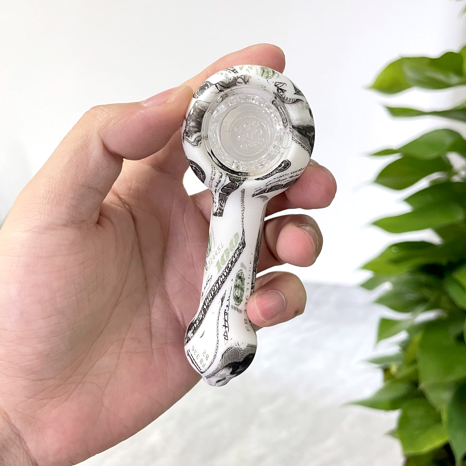 This is a patterned portable smoking device, detachable for easy cleaning, with flexible silicone material ensuring travel durability, while the glass bowl provides a smooth and pure smoking experience.