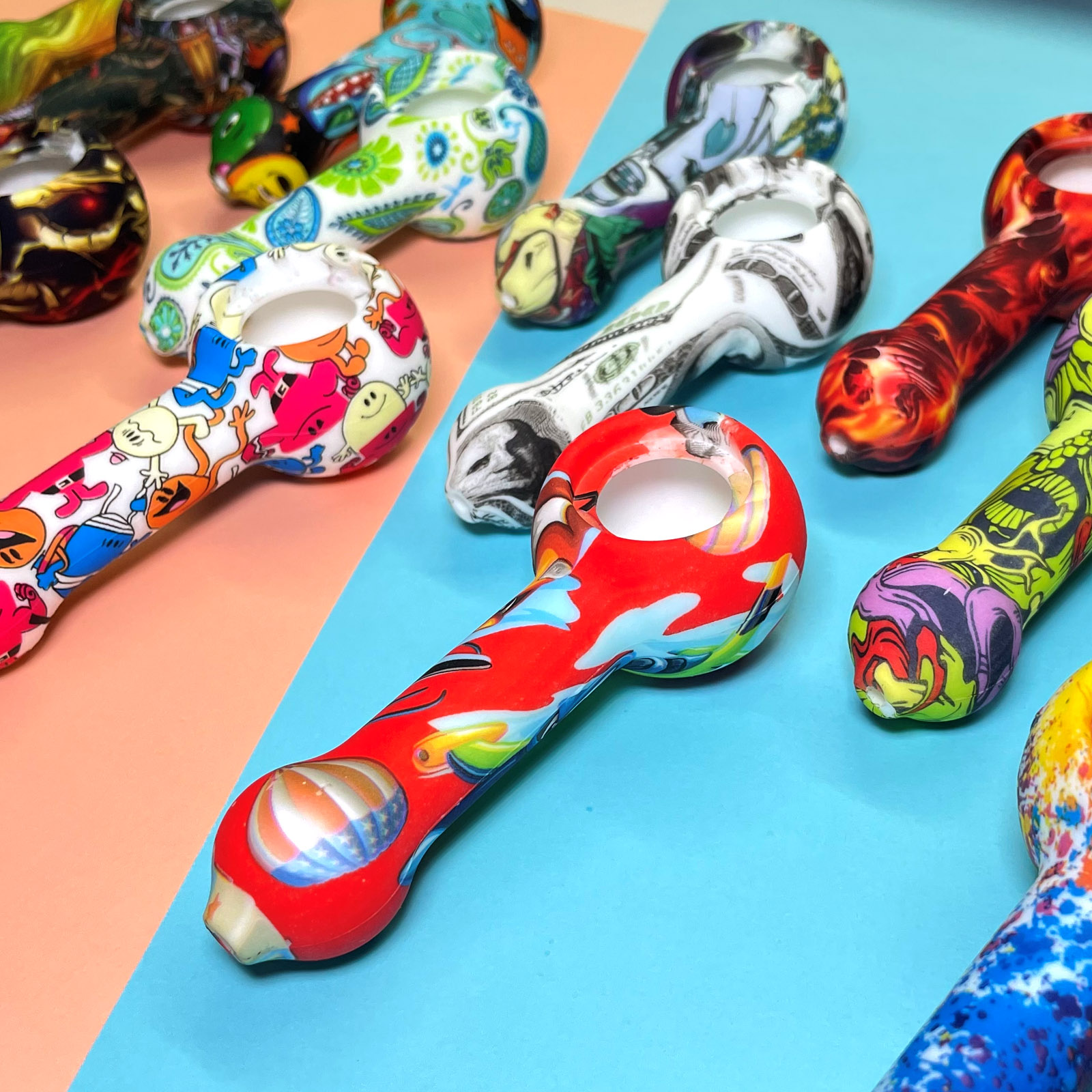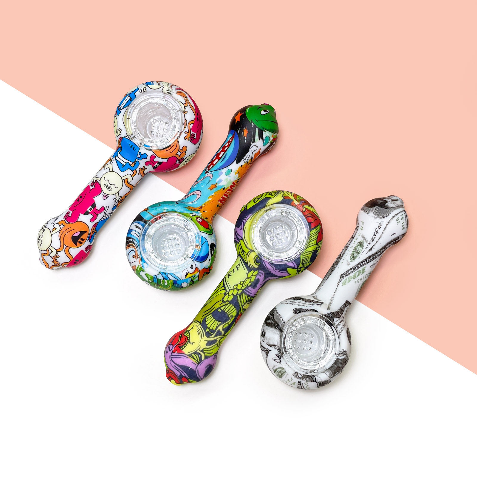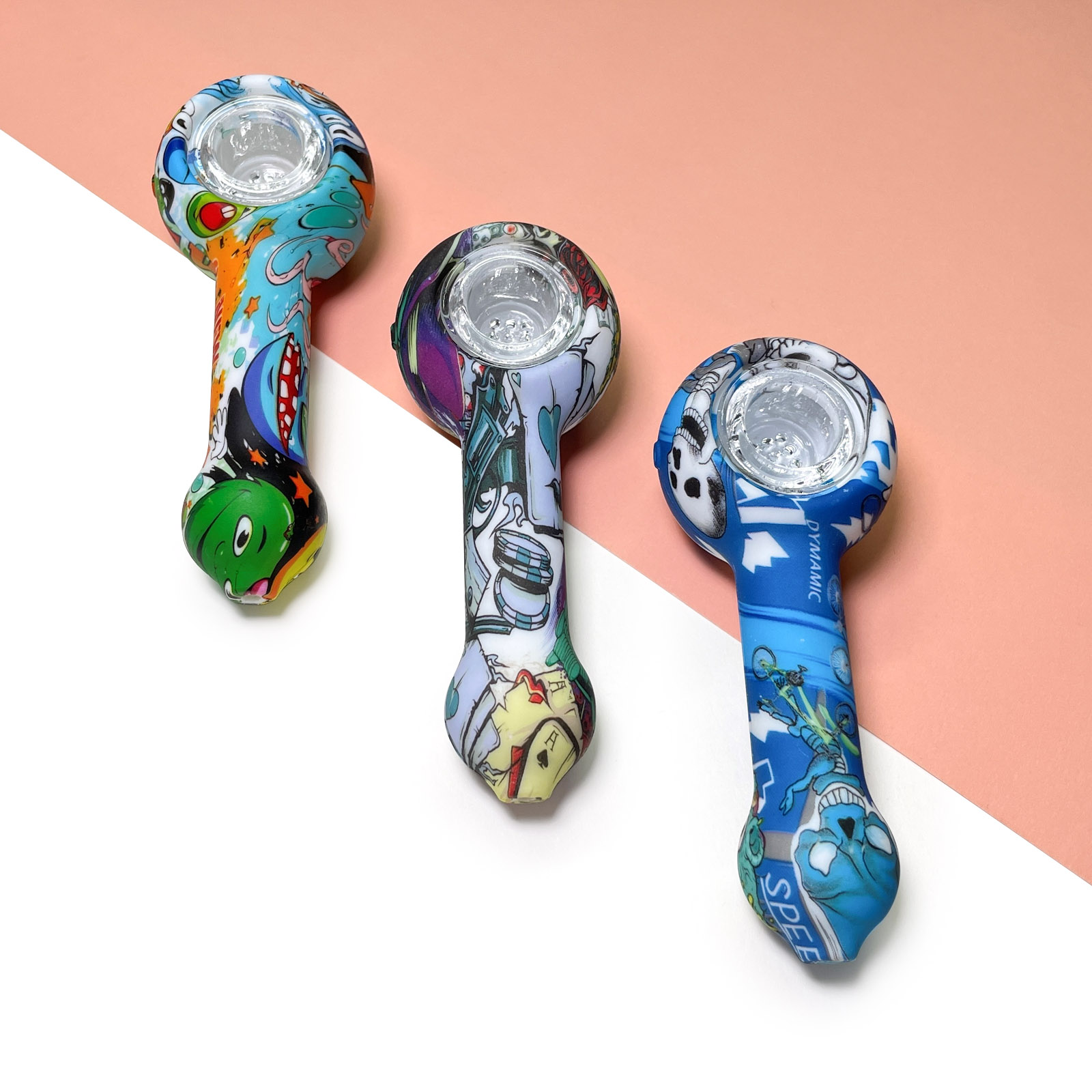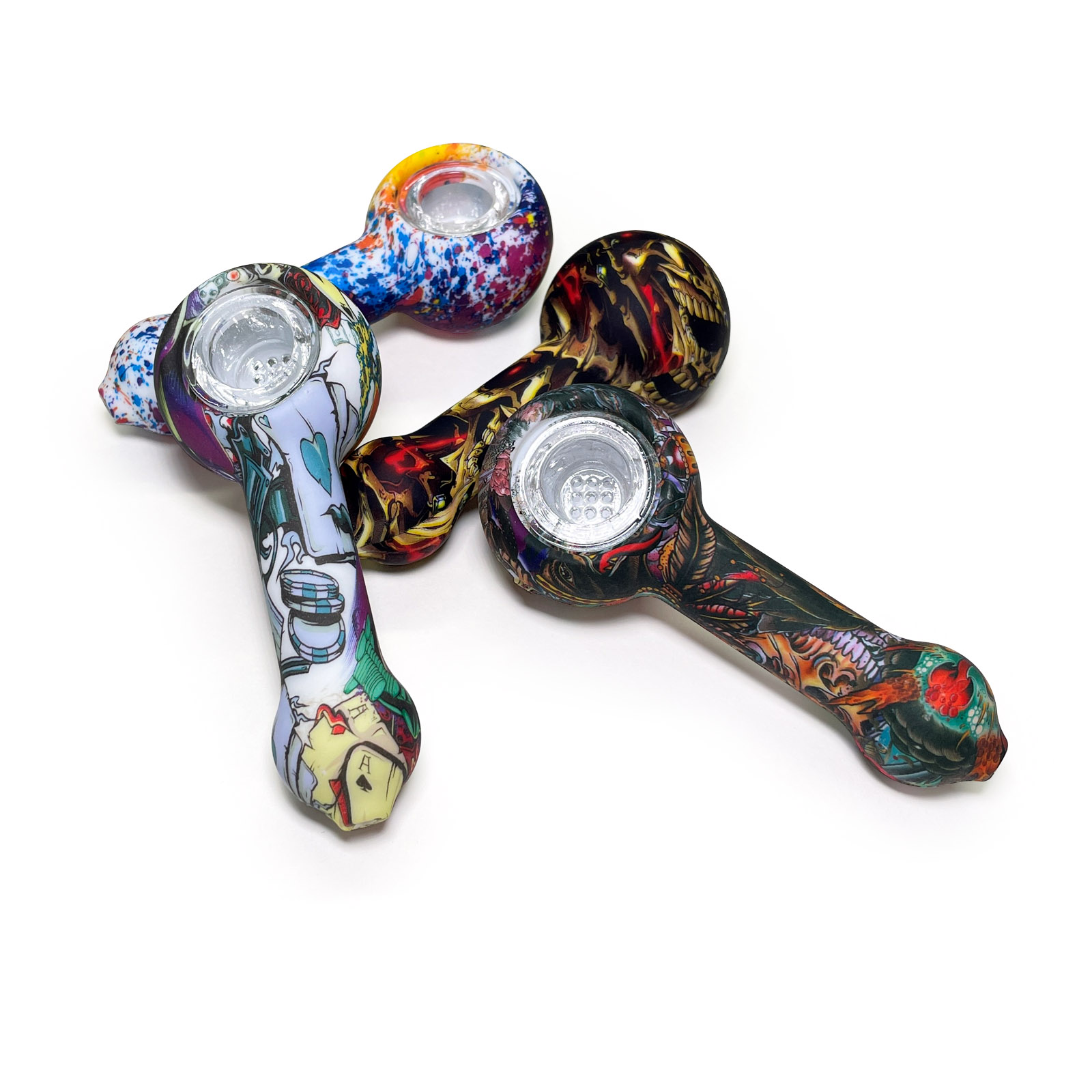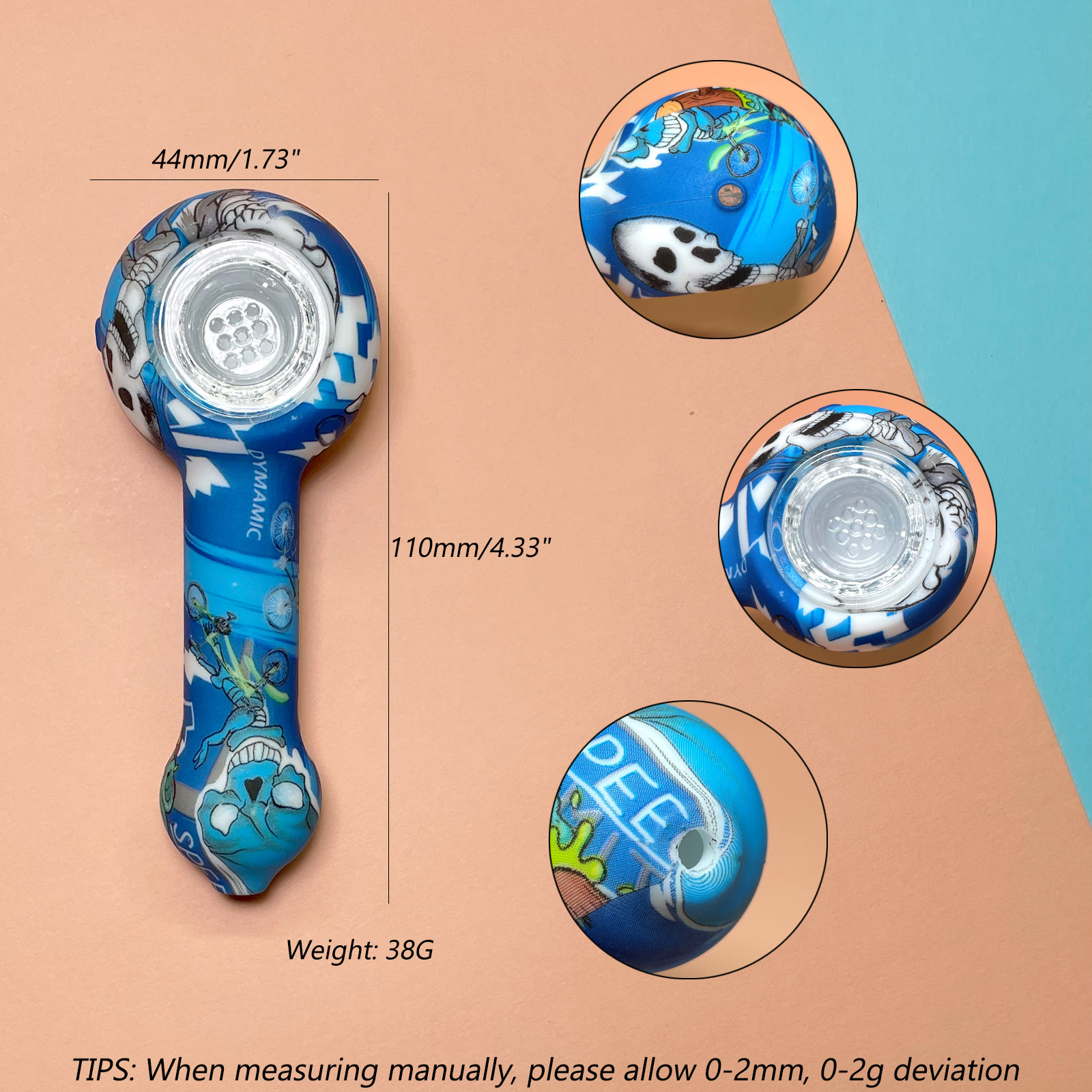 This is a patterned portable smoking device, detachable for easy cleaning, with flexible silicone material ensuring travel durability, while the glass bowl provides a smooth and pure smoking experience.