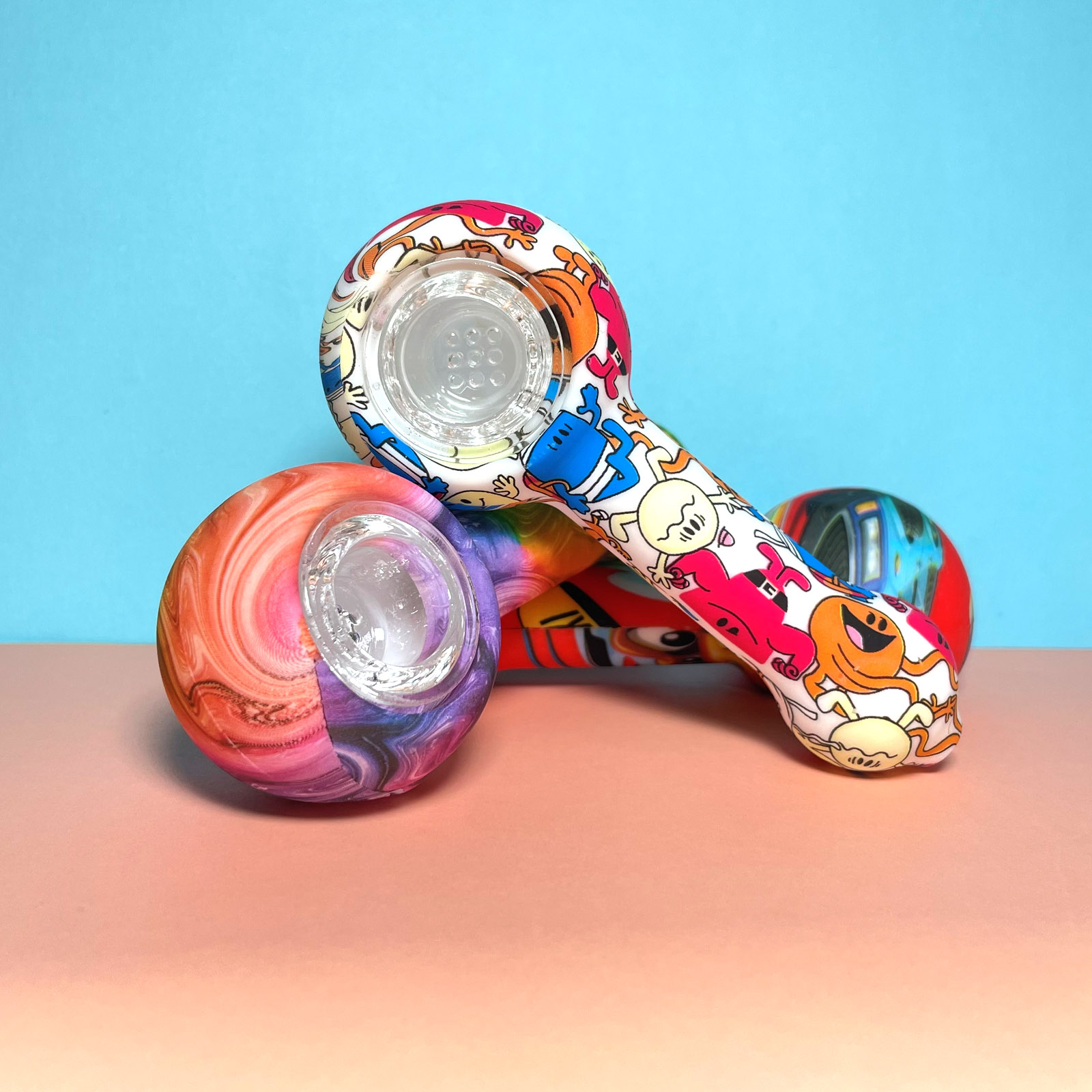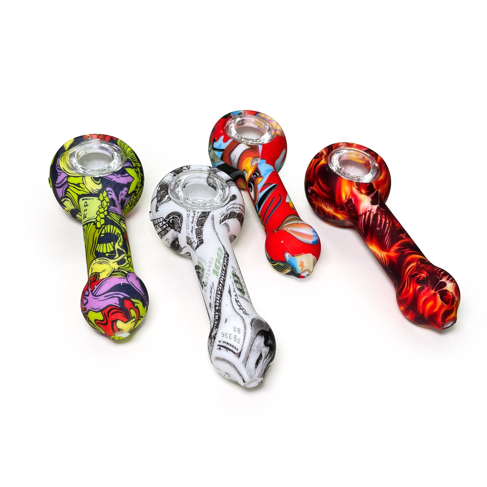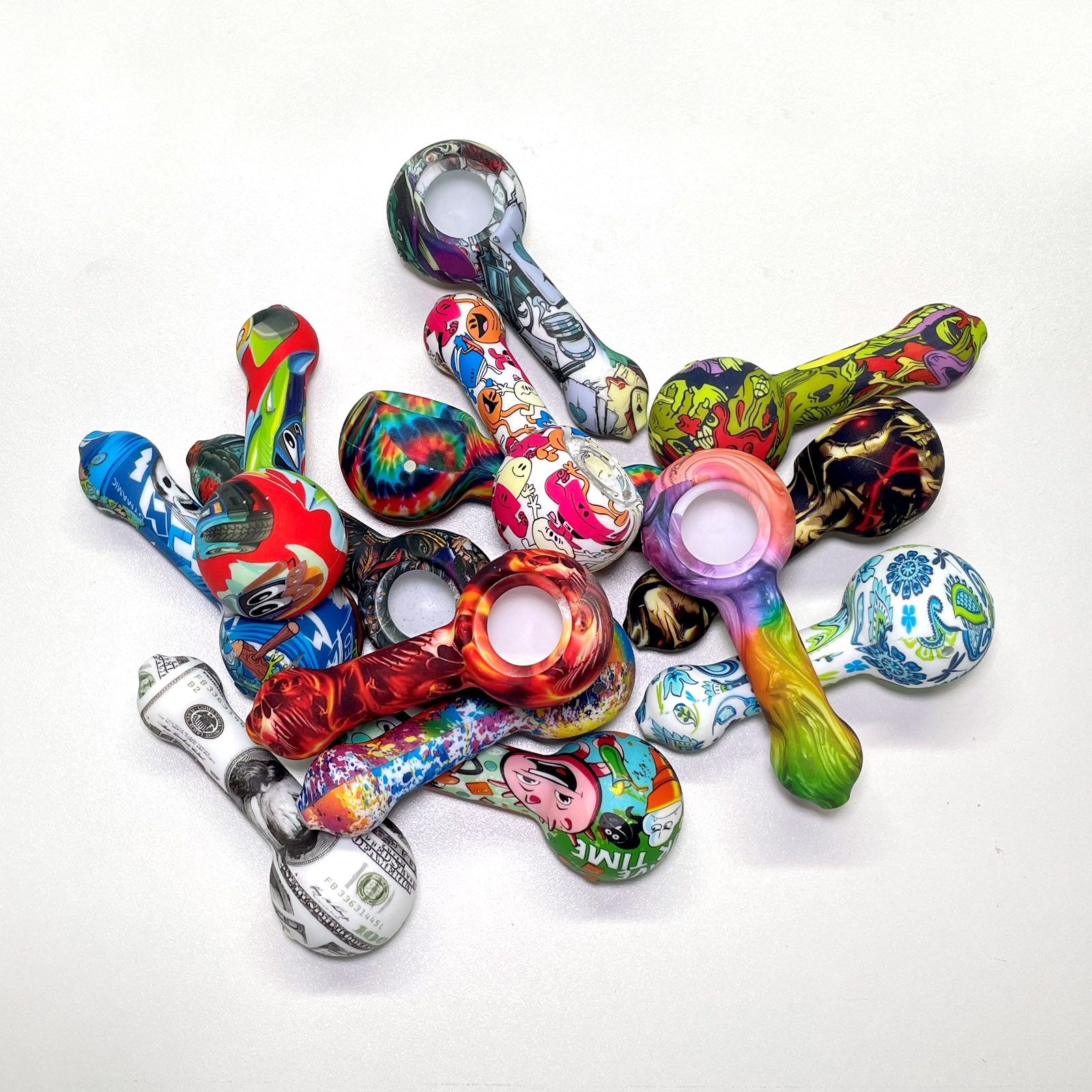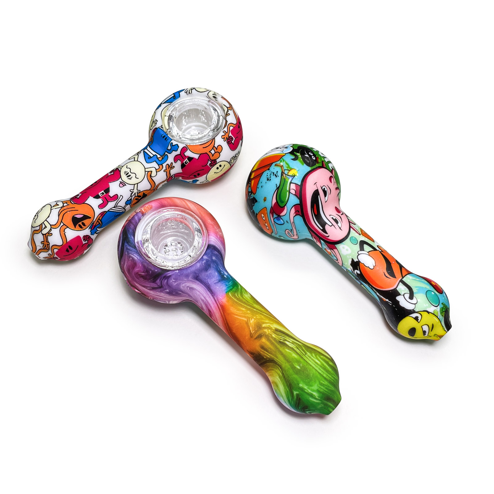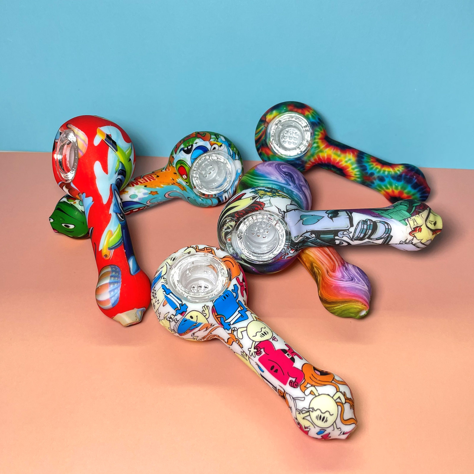 This is a patterned portable smoking device, detachable for easy cleaning, with flexible silicone material ensuring travel durability, while the glass bowl provides a smooth and pure smoking experience.