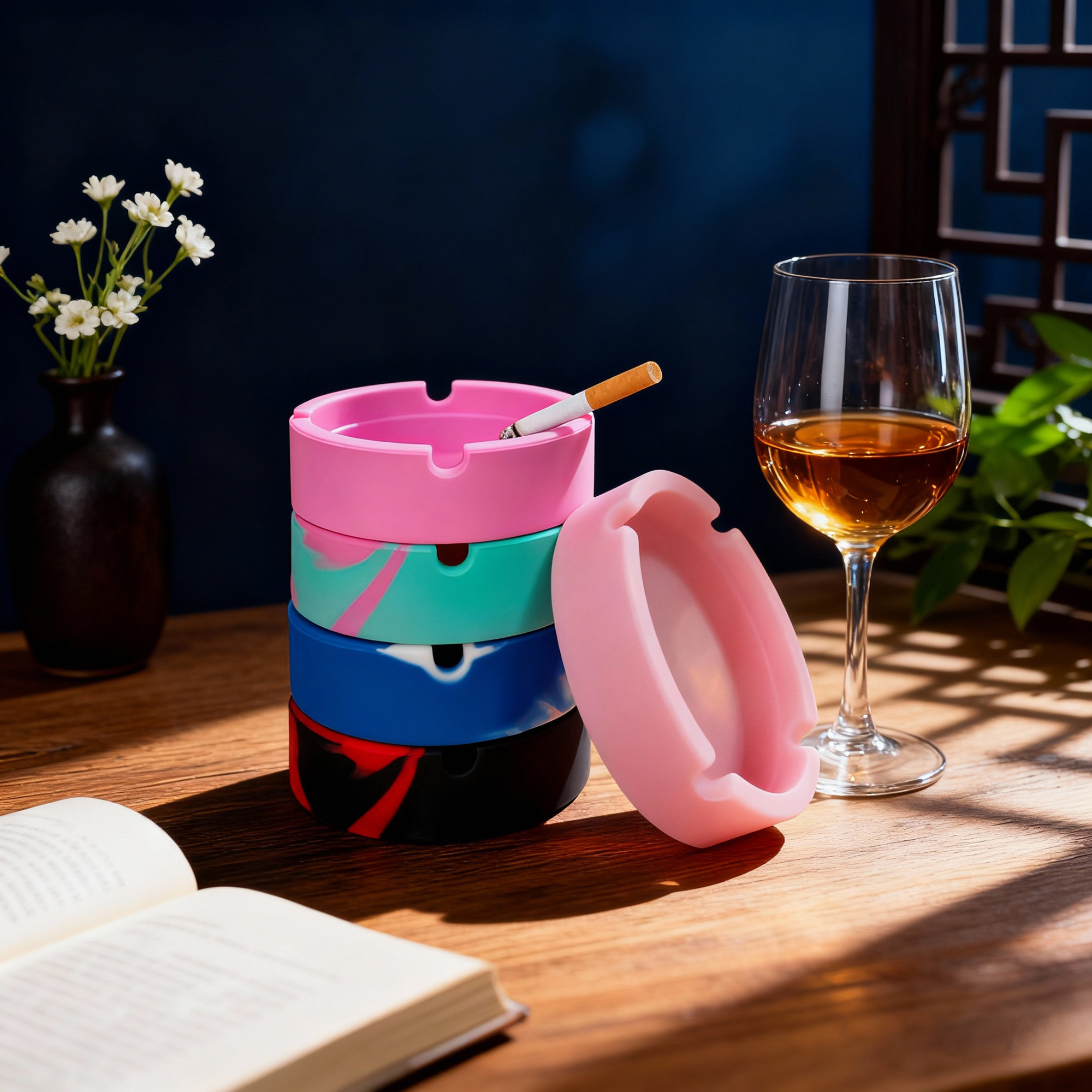 A stylish and practical round silicone ashtray, made of high-quality silicone, reusable, durable, flexible, easy to clean, suitable for your home and office desk, perfect for travel or daily use!