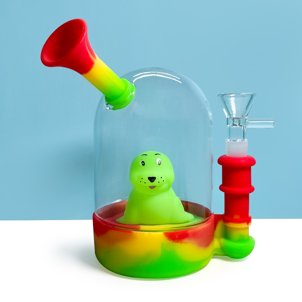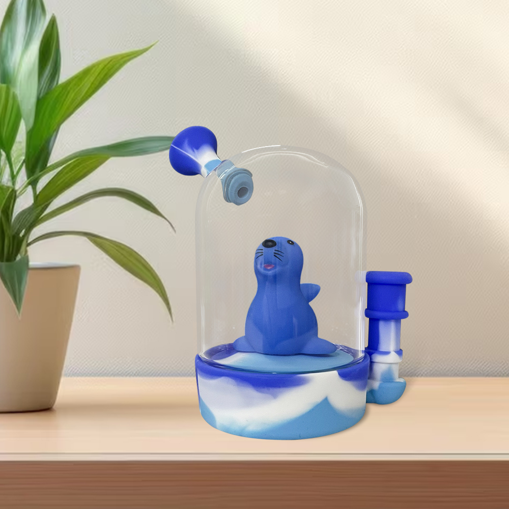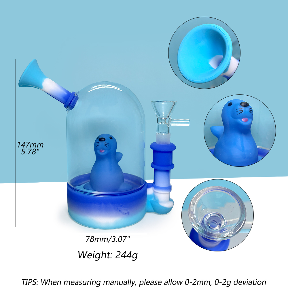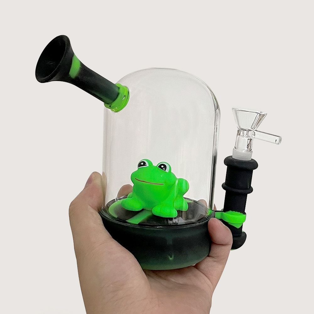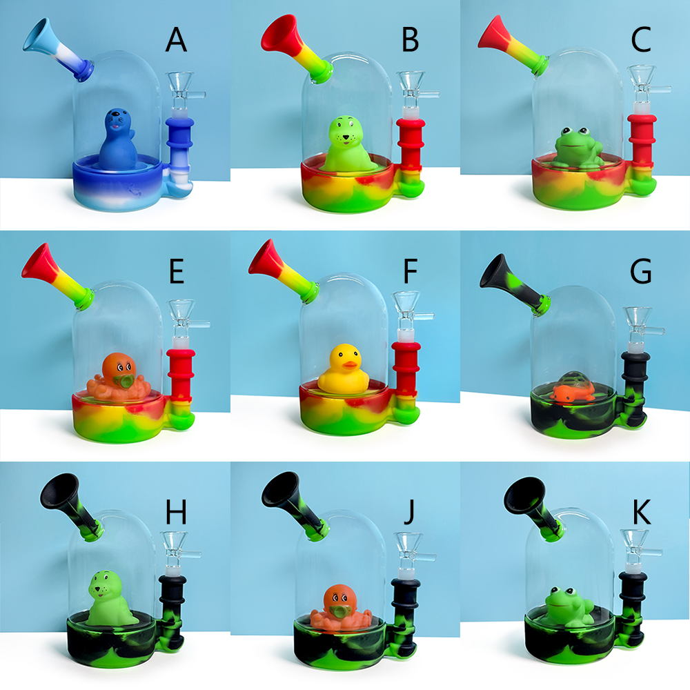 This glass hookah features a transparent glass cover with cartoon figurines inside, such as seals, frogs, ducks, and octopuses. It comes in gradient colors, tie-dye styles, and various color schemes (like blue-white, red-green-yellow tie-dye, and black-green tie-dye). The components include a trumpet-shaped mouthpiece and a glass bowl. It is sturdy, lightweight, portable, and heat-resistant, making it ideal for tech enthusiasts and collectors. The detachable glass pipe design ensures easy cleaning, guaranteeing a smooth smoking experience.