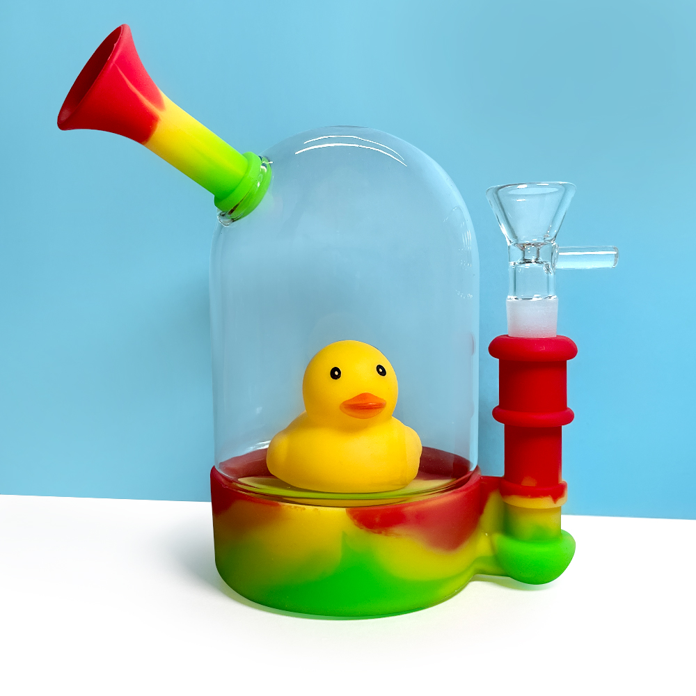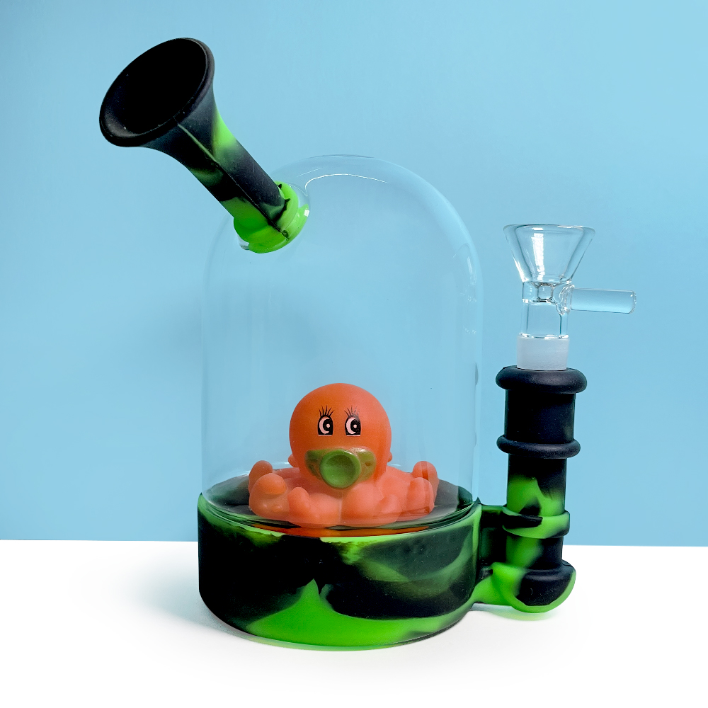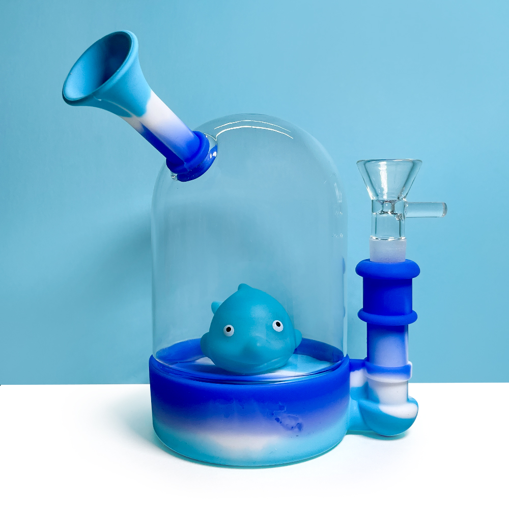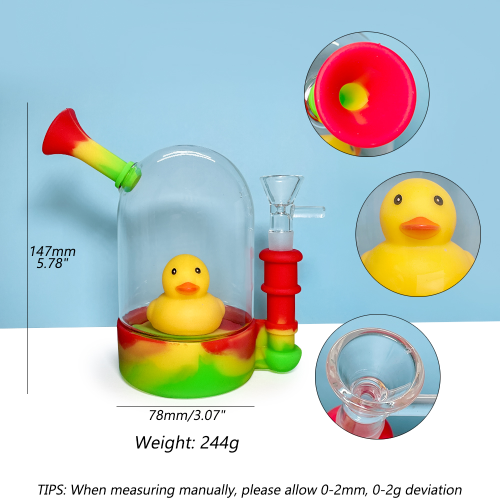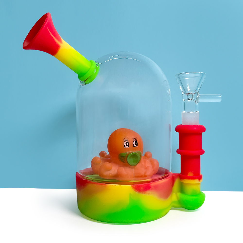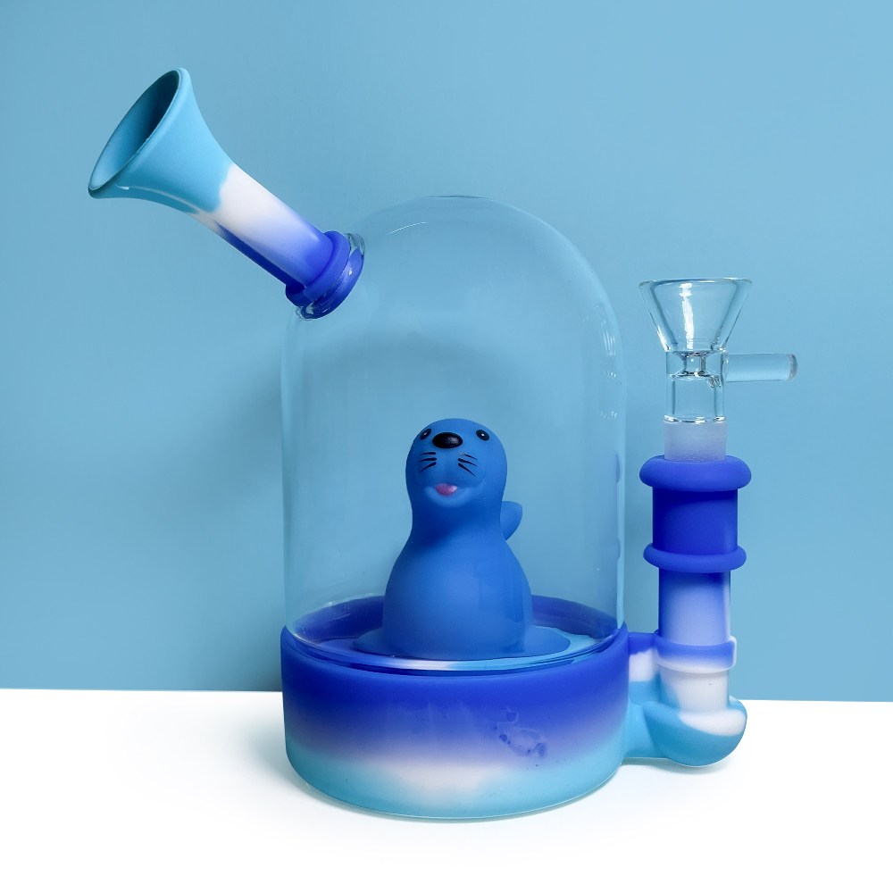 This glass hookah features a transparent glass cover with cartoon figurines inside, such as seals, frogs, ducks, and octopuses. It comes in gradient colors, tie-dye styles, and various color schemes (like blue-white, red-green-yellow tie-dye, and black-green tie-dye). The components include a trumpet-shaped mouthpiece and a glass bowl. It is sturdy, lightweight, portable, and heat-resistant, making it ideal for tech enthusiasts and collectors. The detachable glass pipe design ensures easy cleaning, guaranteeing a smooth smoking experience.
