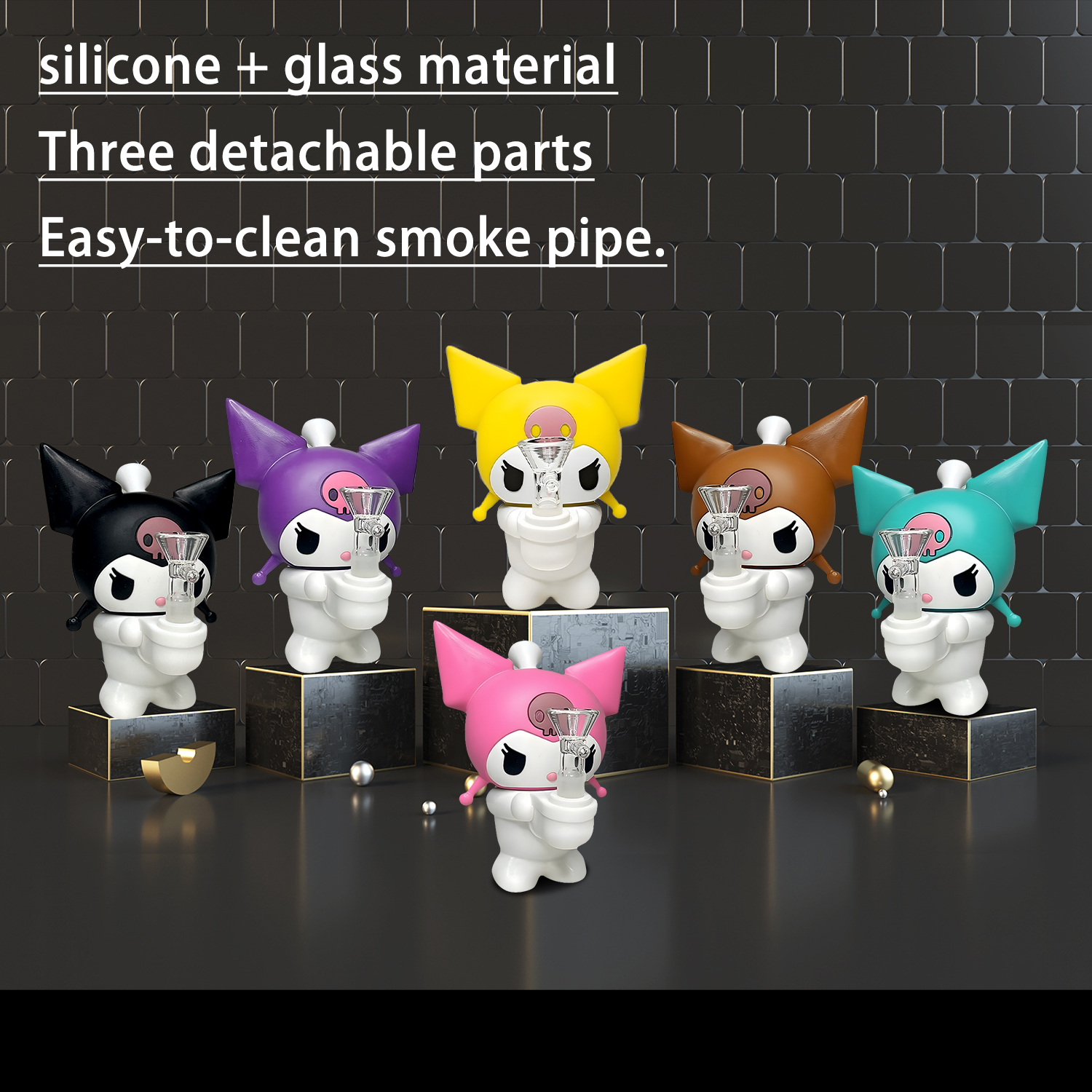 Made of food-grade non-stick silicone, BPA-free, and heat-resistant. Often comes with a glass bowl and downstem for easy use and cleaning. Available in two adorable color options, perfectly combining style and functionality for daily use or gifting. This product is durable for long-term use. Ideal for collectors and daily smokers.