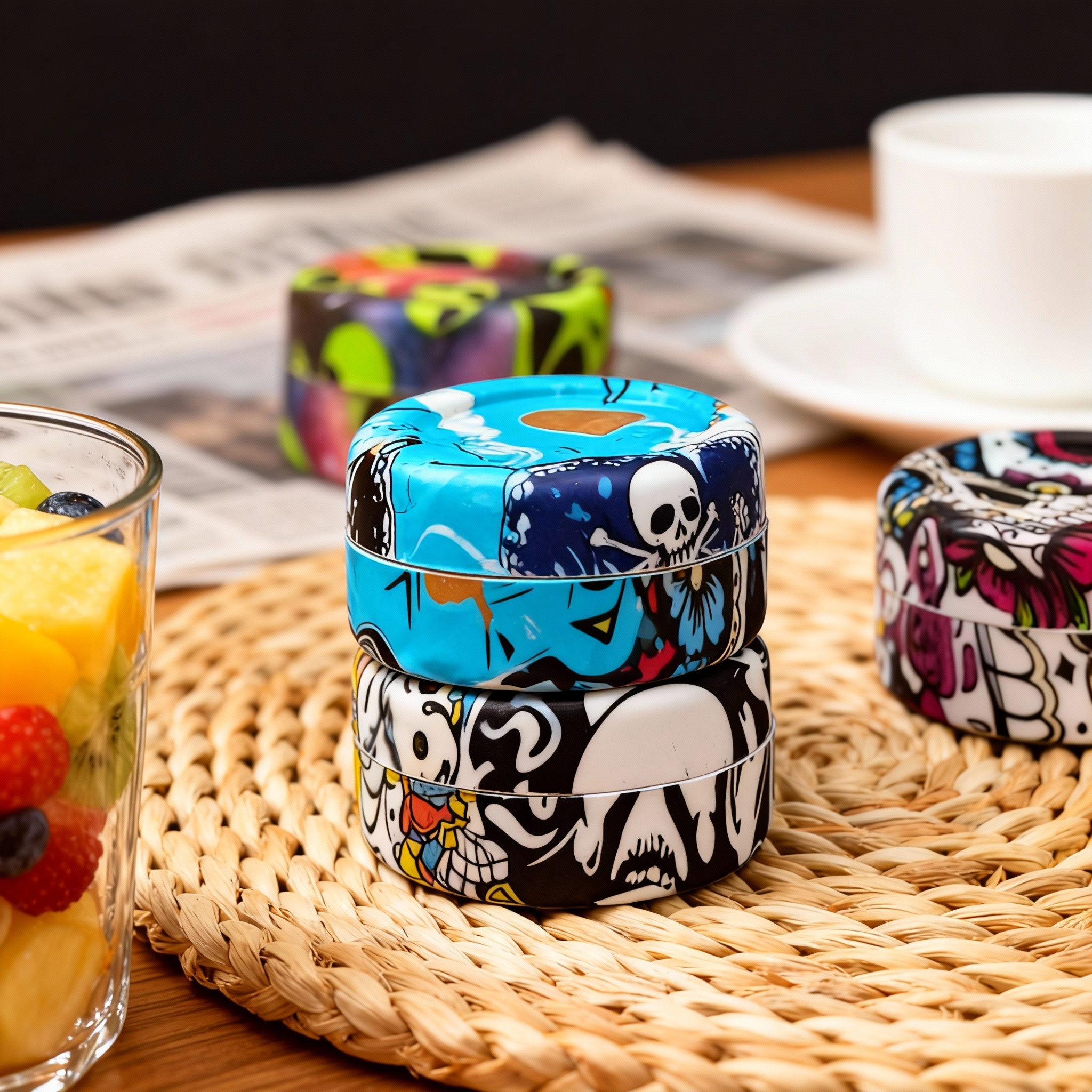 This is a small, heat-resistant, food-grade silicone container designed to meet all your concentrate needs. Perfect for ash collectors, they come in various colors and solids, mixable or matching with lids. Easily fits in your pocket and lasts long. Simply squeeze and pinch to open. These fridge, microwave, and dishwasher-safe containers are ideal for storing skincare creams, lip balms, etc.
