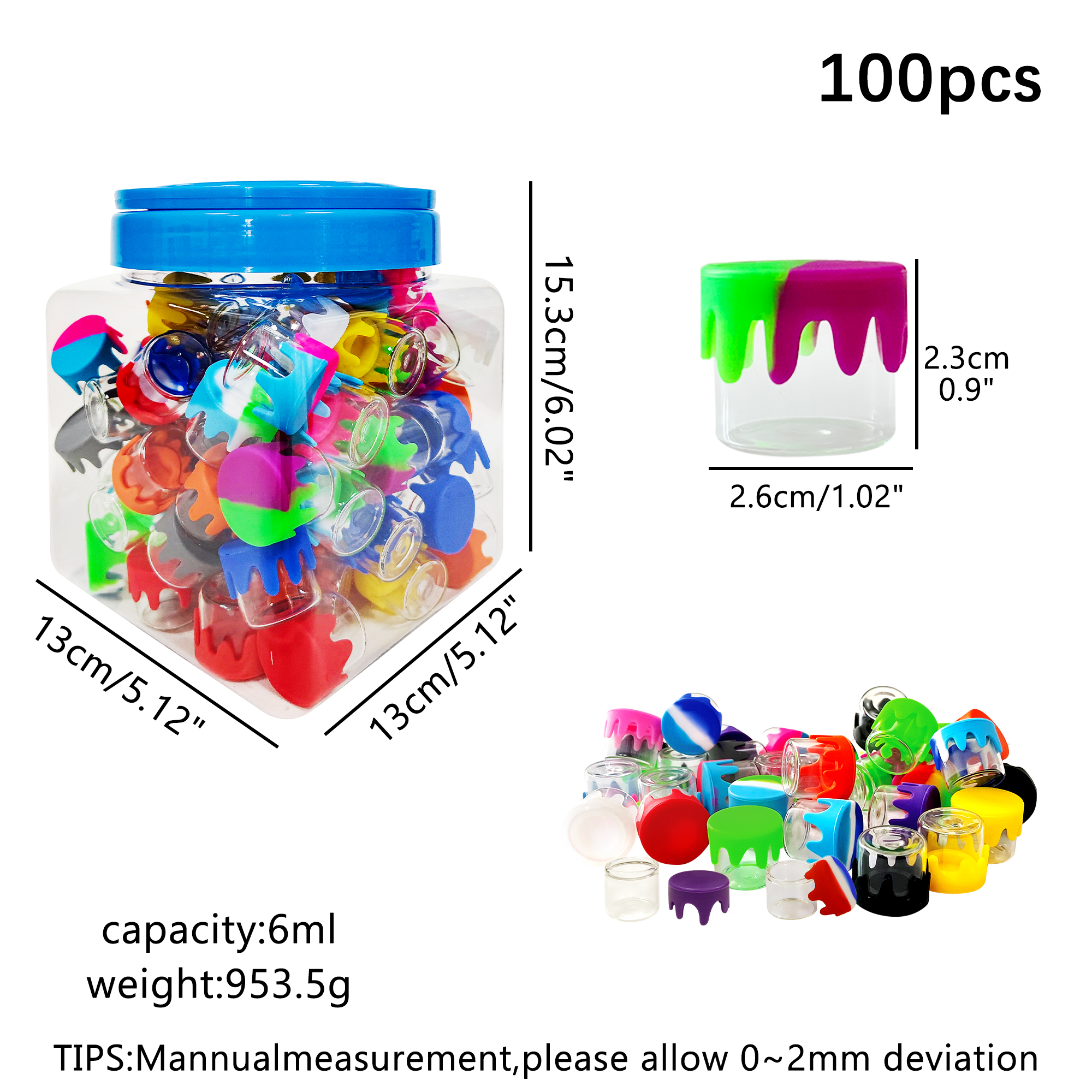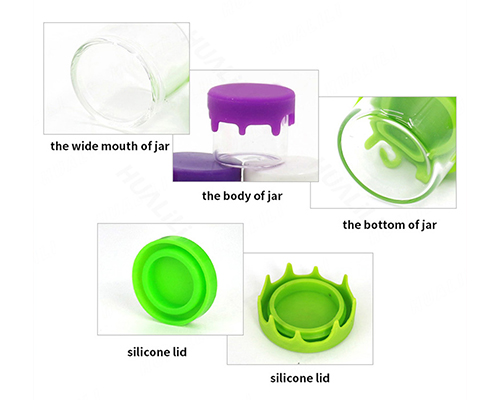 Made of food-grade silicone, BPA-free and heat-resistant glass. Suitable for kitchen and household storage, such as: cosmetics, samples, wax, skincare products, oils, fats, sugar, salt, lotions, creams, ointments, nail polish, etc.
