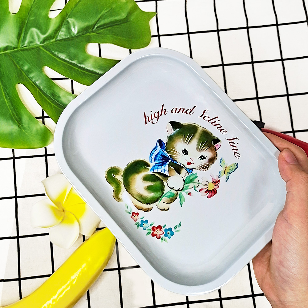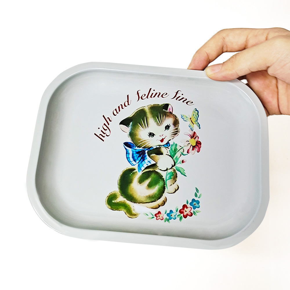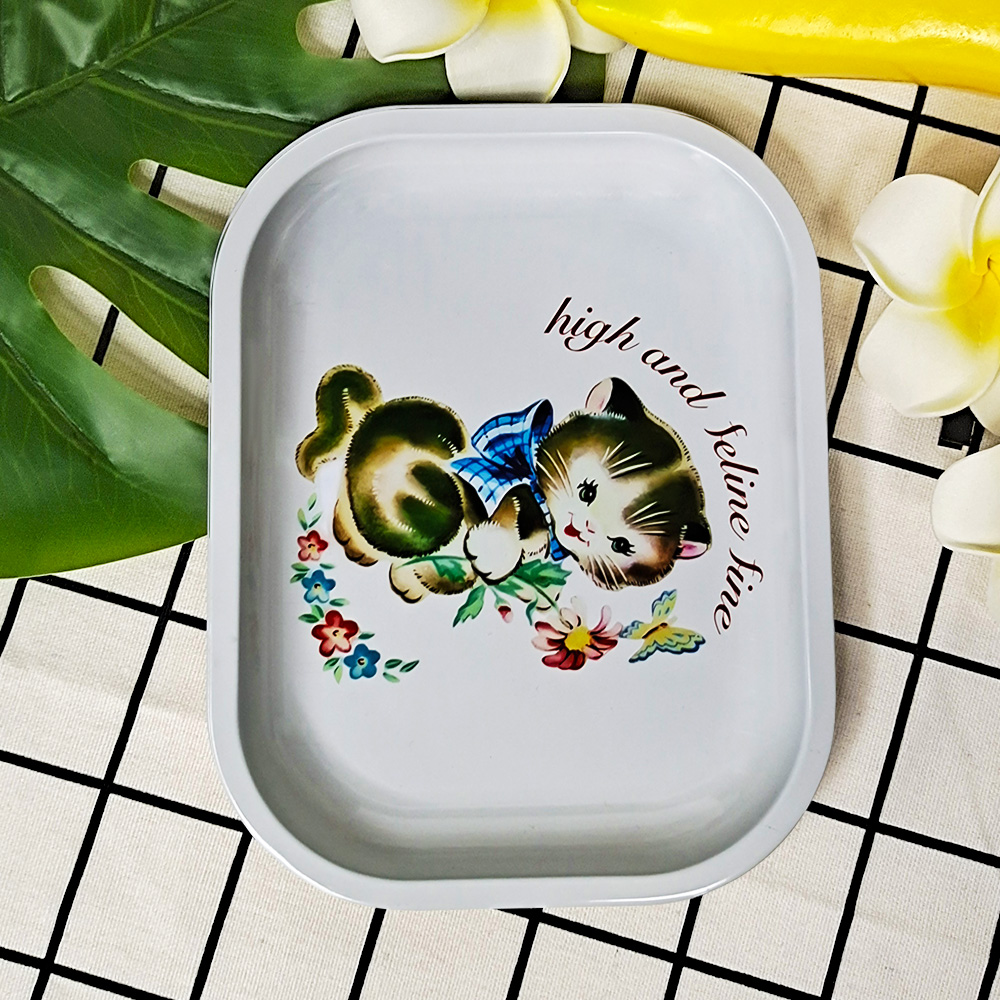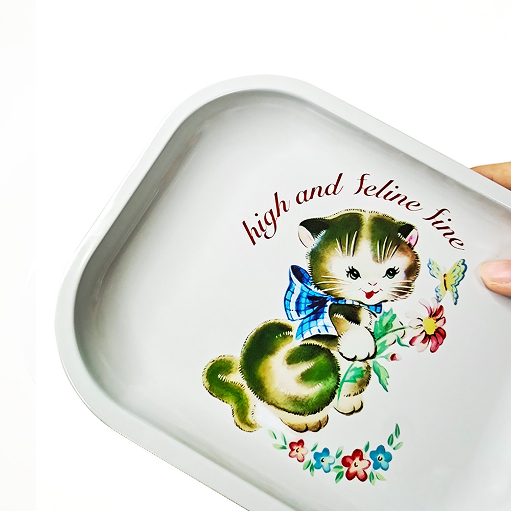 This metal tray features smooth curved edges for easy carrying and can be conveniently used in various settings. Whether indoors, outdoors, or on the go, this tray is an excellent portable choice to safely store your items and accessories.