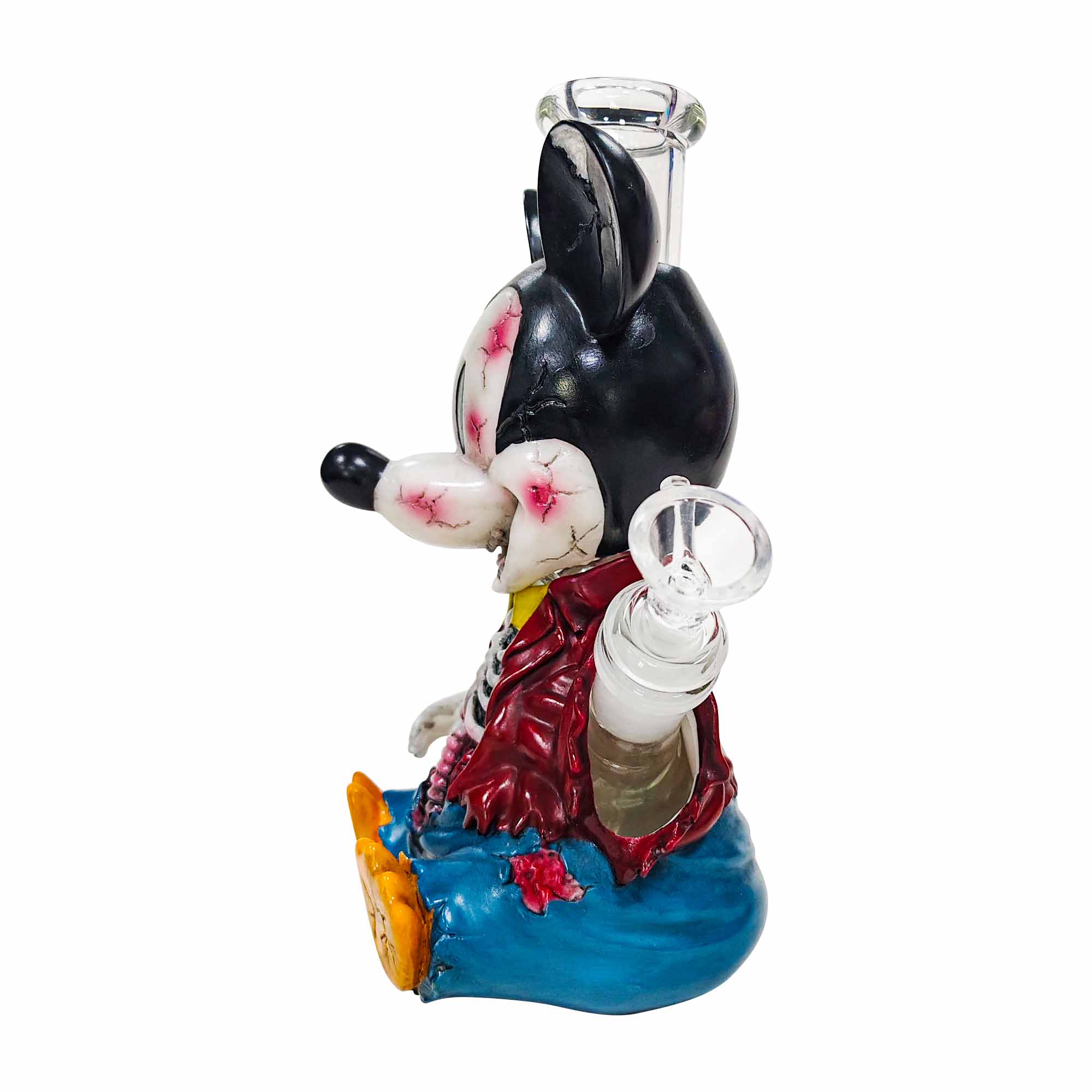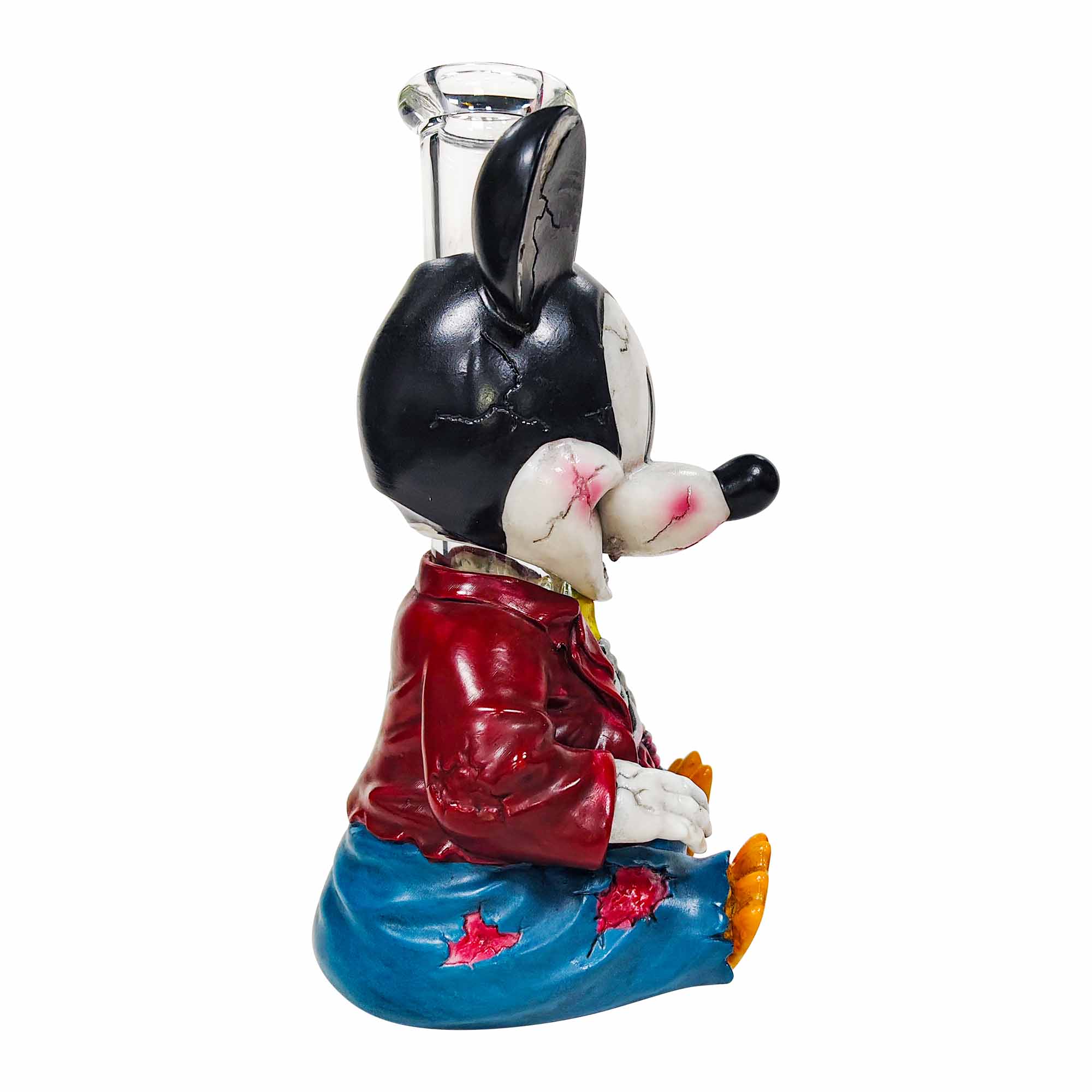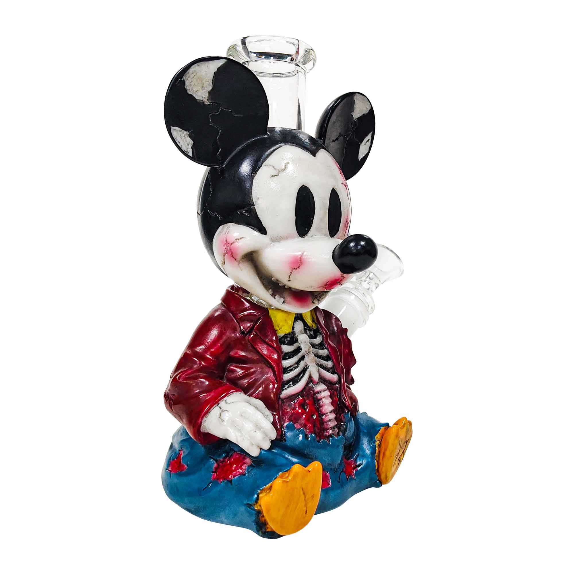 This artwork presents a terrifyingly damaged texture measuring 7.99 inches (featuring facial cracks, bloodstains, and exposed skeletal ribcage), wearing a torn jacket and ripped jeans, with a transparent glass smoking pipe embedded in the head. The materials used are PVC combined with glass. For collectors passionate about savoring legendary tales woven from smoke and shadows, this is undoubtedly an intoxicating treasure.