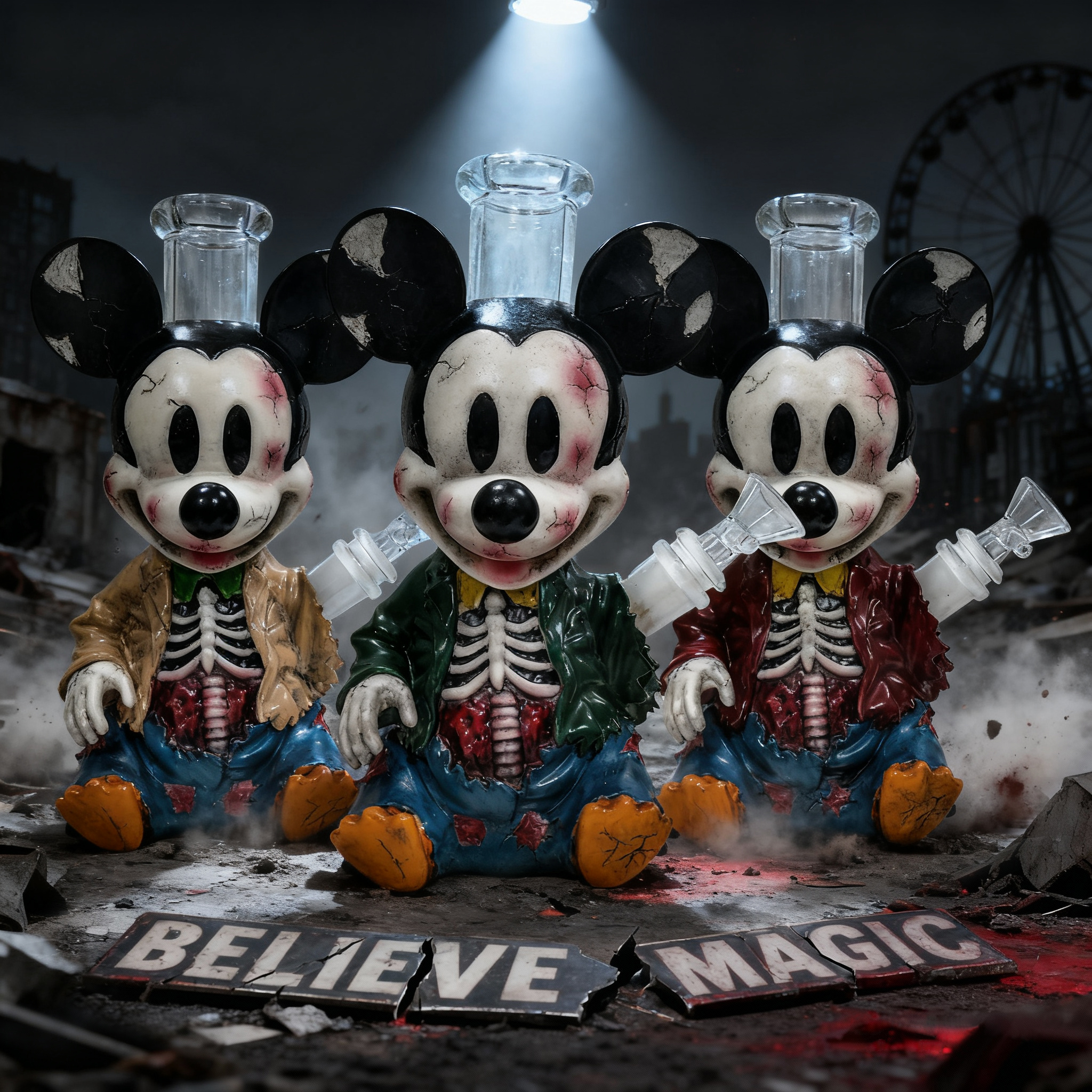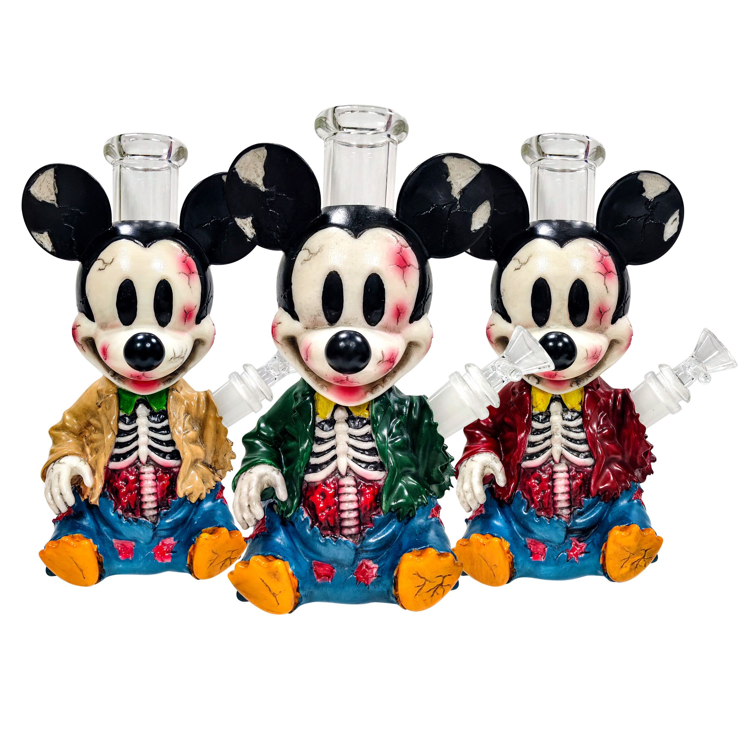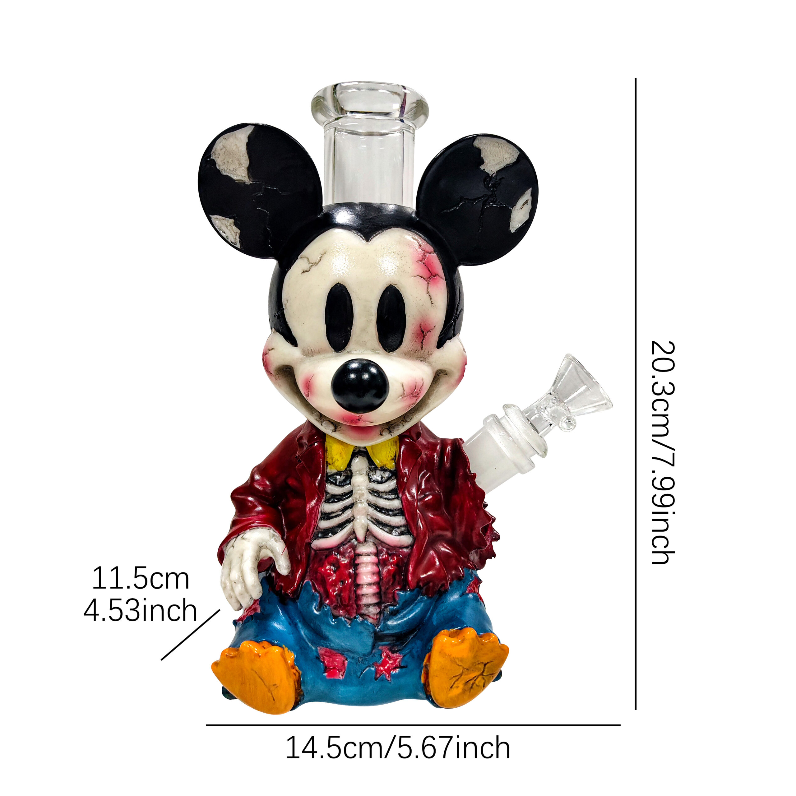 This artwork presents a terrifyingly damaged texture measuring 7.99 inches (featuring facial cracks, bloodstains, and exposed skeletal ribcage), wearing a torn jacket and ripped jeans, with a transparent glass smoking pipe embedded in the head. The materials used are PVC combined with glass. For collectors passionate about savoring legendary tales woven from smoke and shadows, this is undoubtedly an intoxicating treasure.