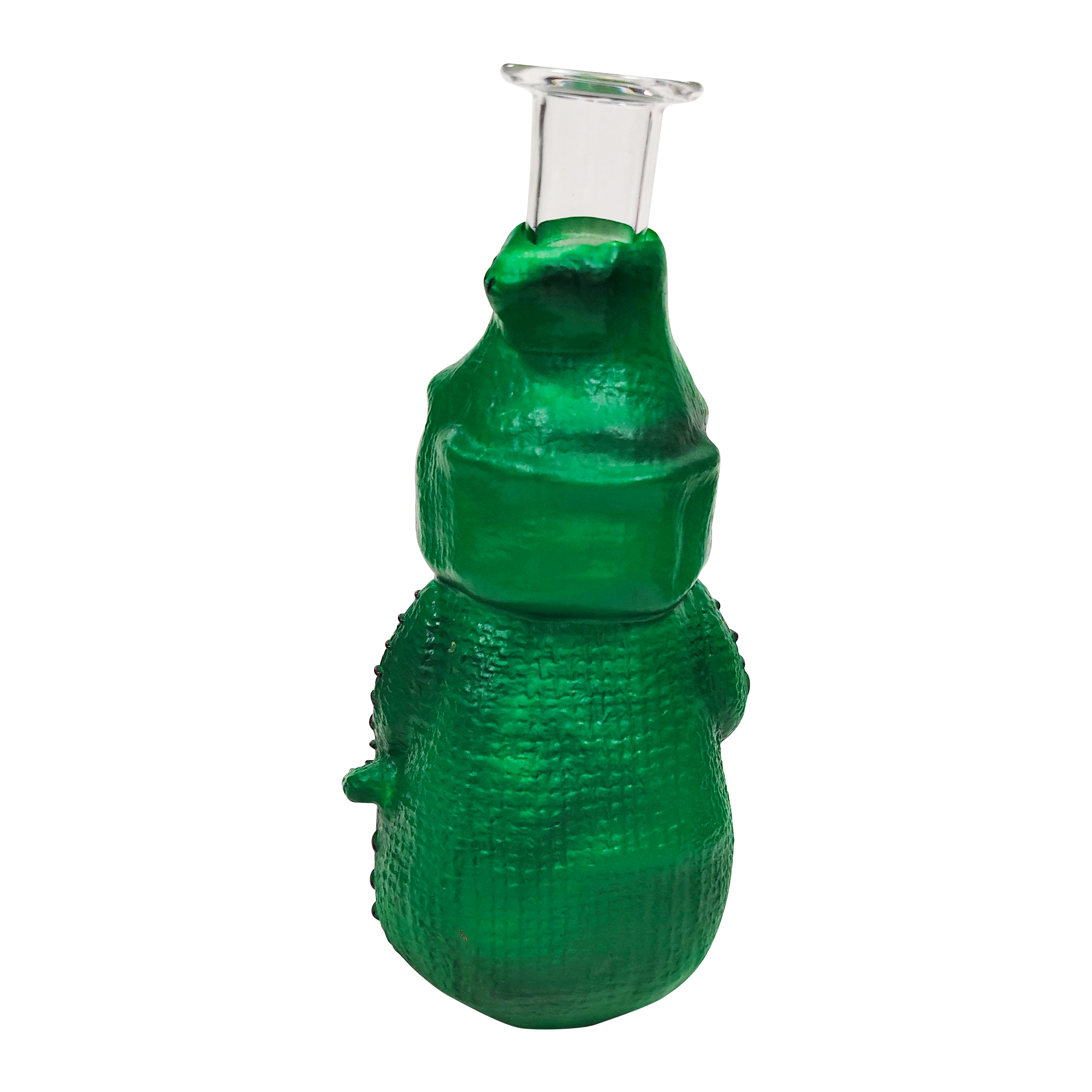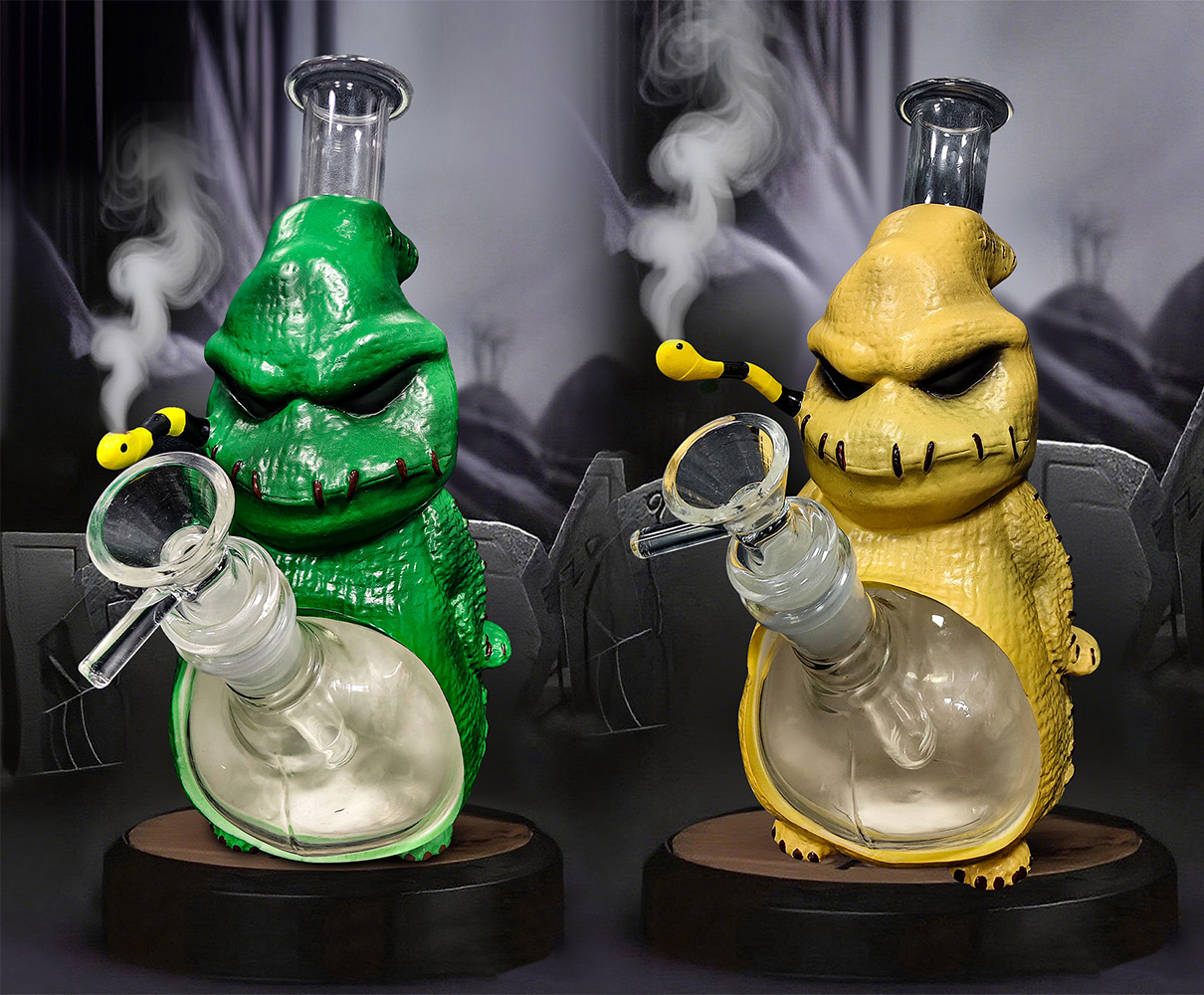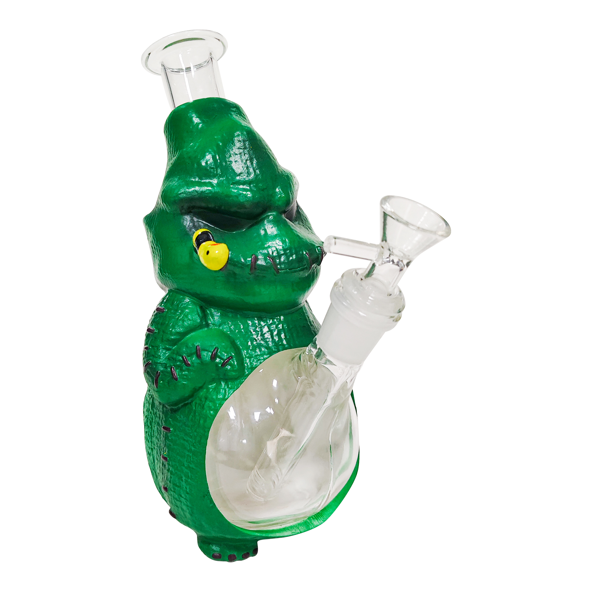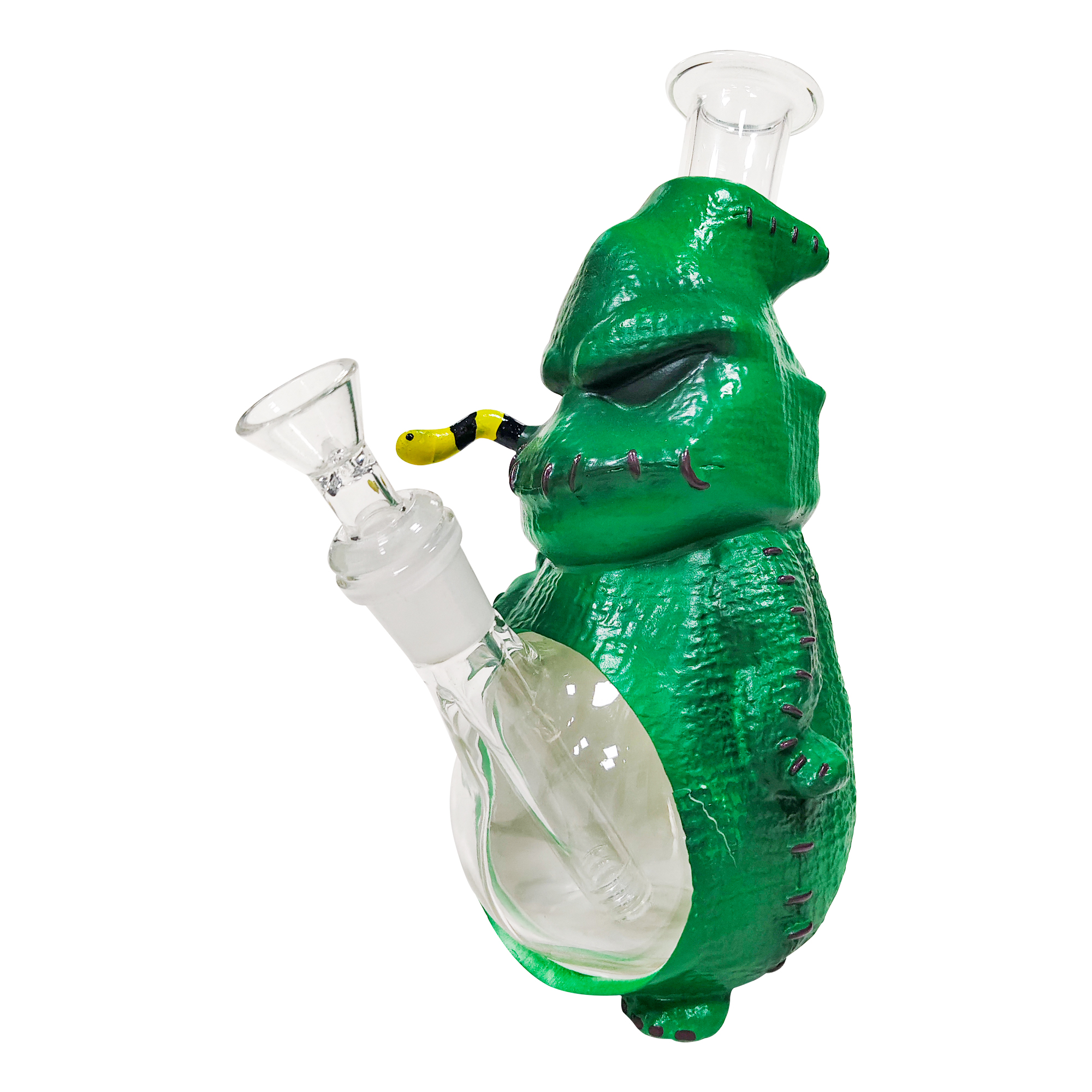 This is a doll with visible woven texture on the surface, its body parts stitched together with thick threads and exposed seams. It has a round, chubby, and stocky figure with relatively short limbs (arms and legs), giving an overall clumsy yet eerie appearance. The eyes are deep black hollows (paired with fierce-looking eyebrows), and the mouth is a grinning row of stitched seams; it often holds a yellow pipe with black patterns in its mouth. Made with durable PVC body + high-transparency glass components, combined with sturdy glass to ensure smooth smoking. Whether for sci-fi enthusiasts or pipe collectors, this smoking pipe is an indispensable must-have!