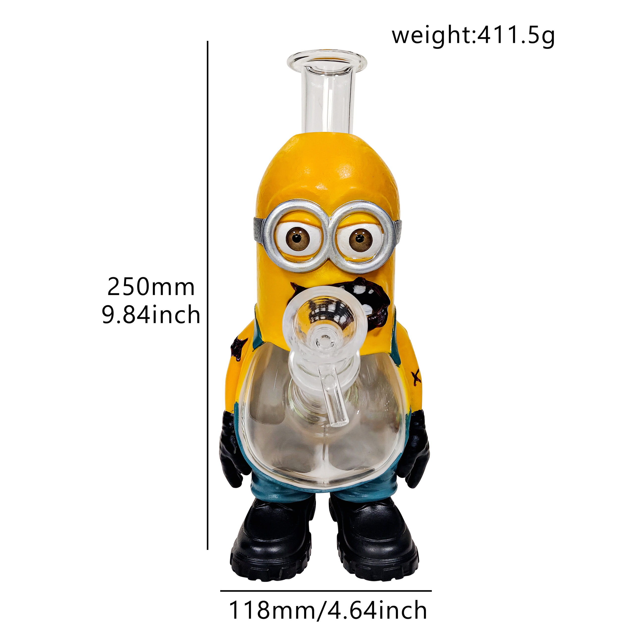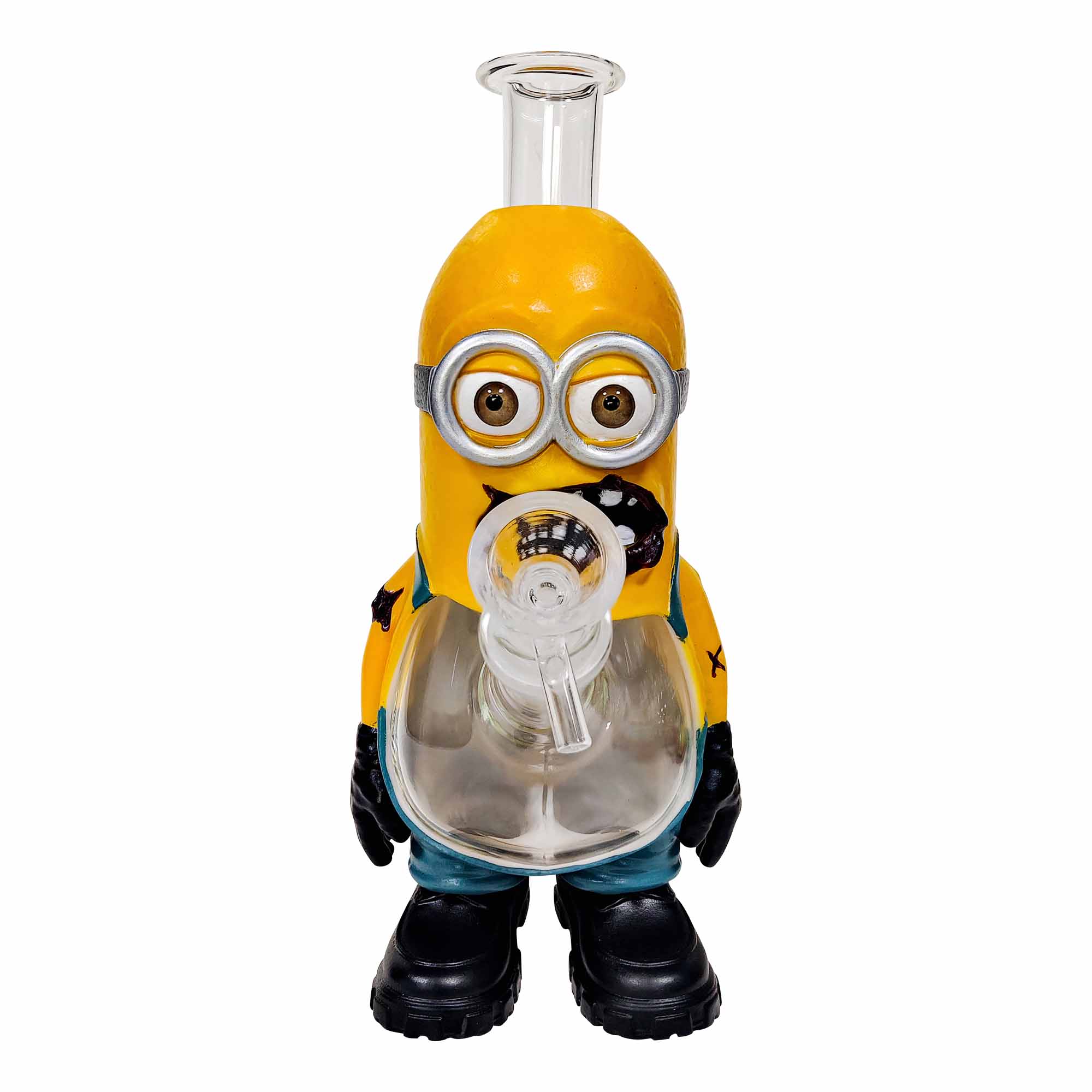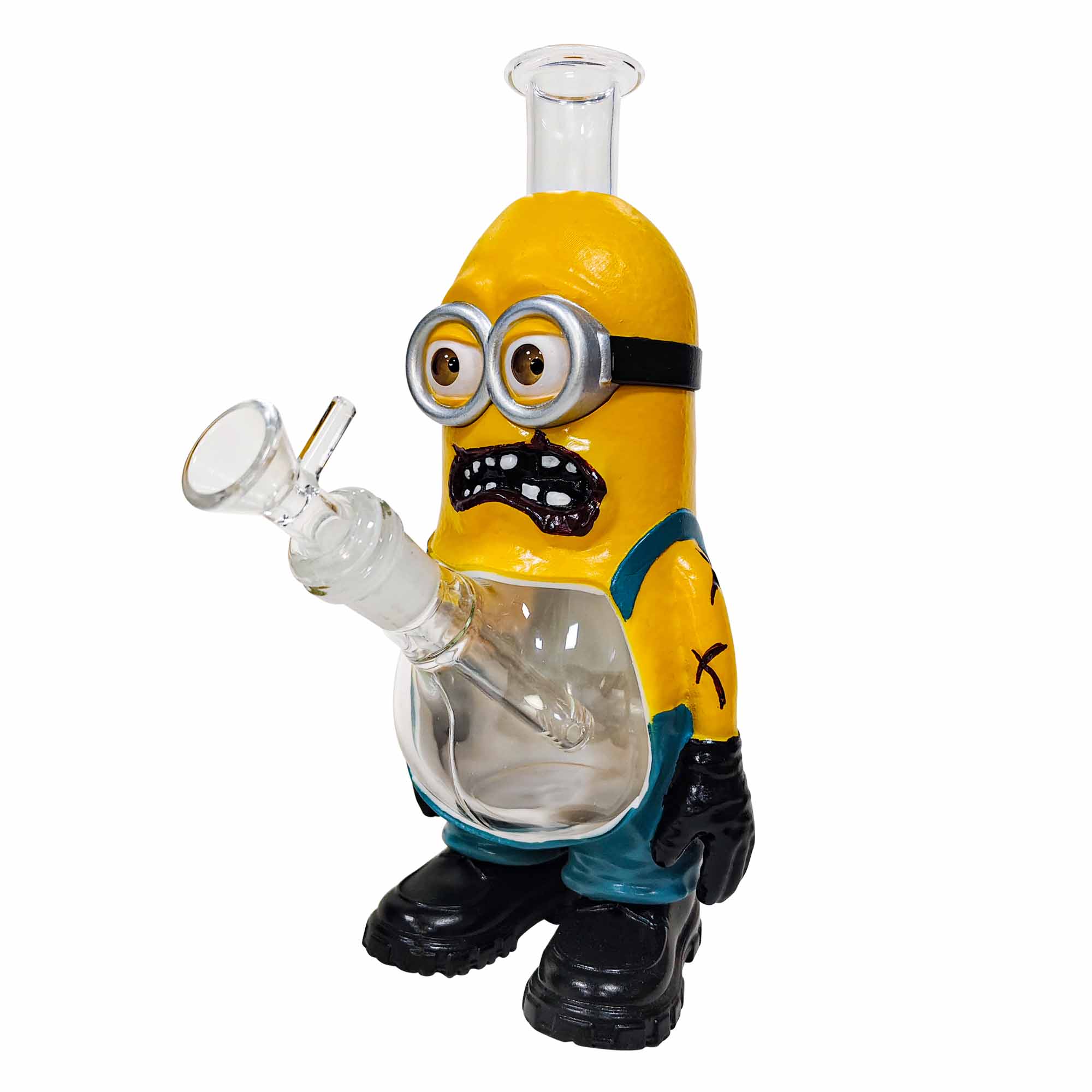 This is a 9.84 somewhat terrifying yet adorably zombified Minion, with glass seamlessly embedded in its belly. The colors and design are lifelike, making it perfect for a smooth and stylish experience.
